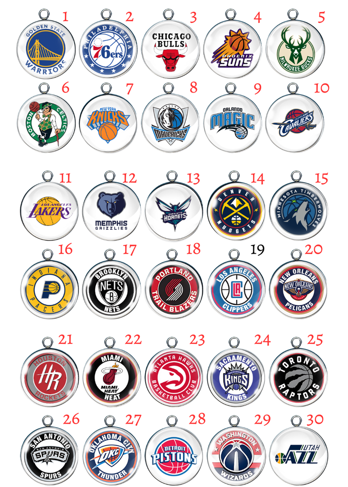 These NBA Basketball Photo Glass Cabochon charms are the perfect way to show off your love for your favorite basketball team! Each charm features a high-quality photo of a popular NBA team or player encased in a smooth and clear glass dome, creating a 3D effect that is both eye-catching and durable. The charm is made with a sturdy and corrosion-resistant stainless steel base, ensuring that it can withstand everyday wear and tear without losing its shine. The stainless steel material also makes it hypoallergenic, so it won't irritate even the most sensitive skin. This charm is compatible with most charm bracelets and necklaces, making it easy to add to your existing jewelry collection. Alternatively, it can also be worn on its own as a statement piece. The charm is approximately 18mm in diameter, making it the perfect size for showing off your team spirit without being too bulky. Whether you're a die-hard fan of the Lakers, Warriors, or any other NBA team, these charms are sure to be a hit with fellow fans. Don't miss out on the chance to add a stylish and unique accessory to your collection – grab one of these NBA Photo Glass Cabochon charms today!