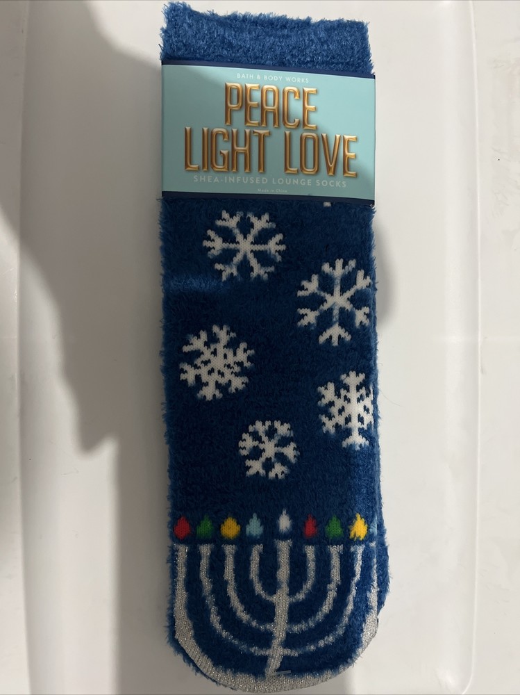 Bath & Body Works HAPPY HANUKKAH Menorah Blue Shea-Infused Cozy Lounge Socks. Condition is New with tags. Shipped with USPS Ground Advantage....