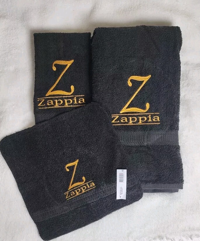 Personalized 3 piece towel set: bath(27x52} hand(16x26 towel and washcloth(12x12) combo set. All items are custom made. I have a range off designs just ask...sports, mascots, cartoons, sayings and many more. Please specify color of towels white, black, grey, blue. These towels will be personalized at your request for FREE! Simply include your request in the comment box or send us a separate message with details. Smoke and pet free environment. COLOR AND TOWEL DESIGN MAY VARY DO TO AVAILABLITY! Thank you for viewing our listings and be sure to check back. We are constantly adding new items. So add us to your favorite sellers list and visit often. Thanks