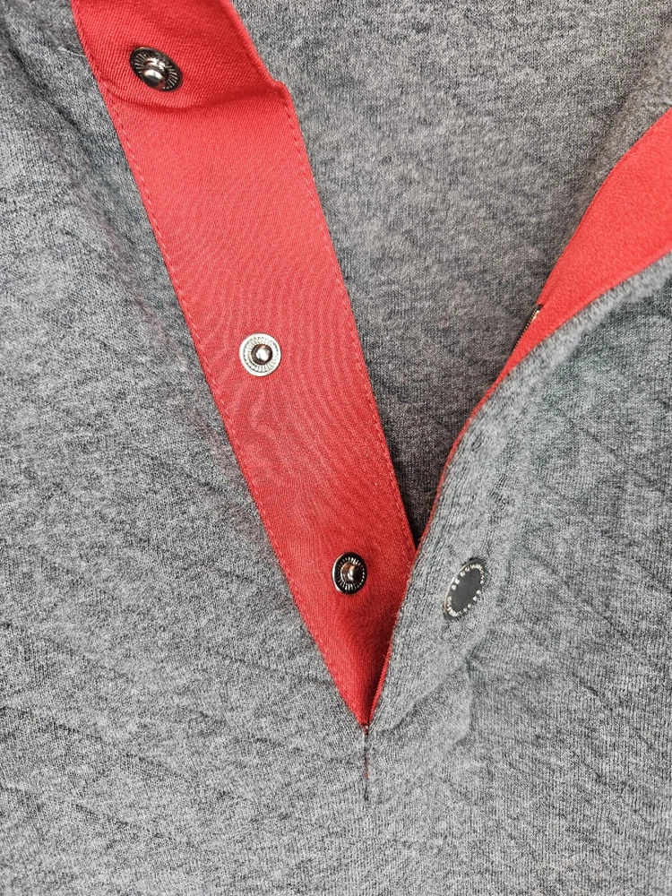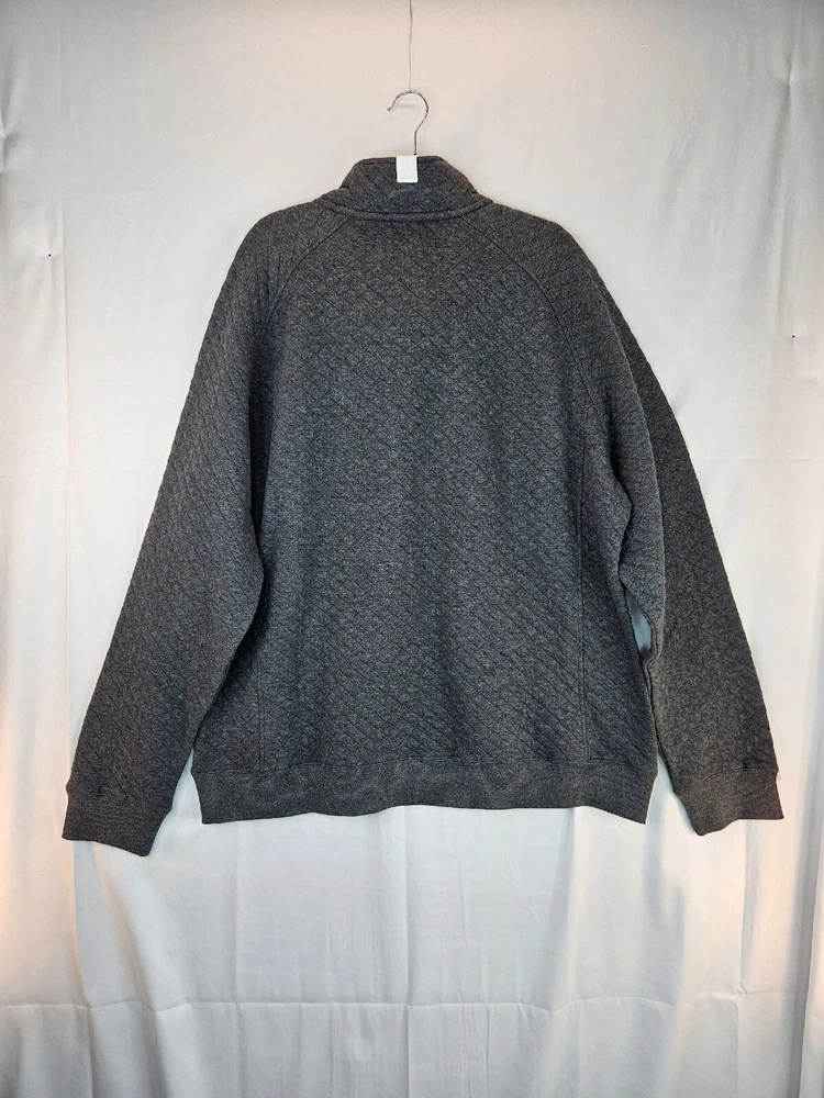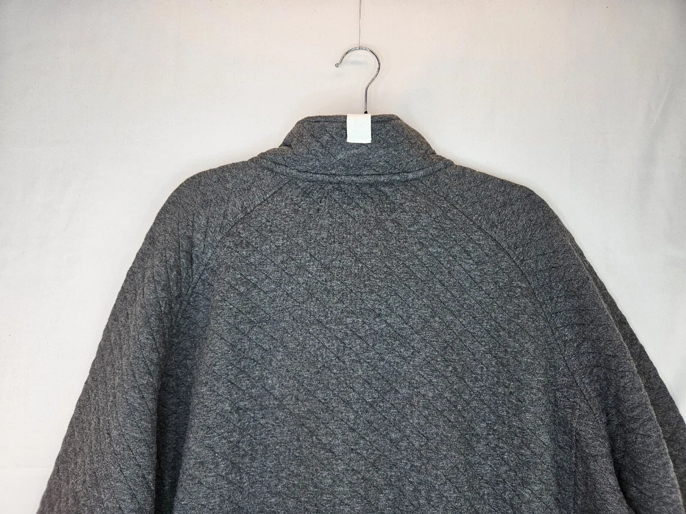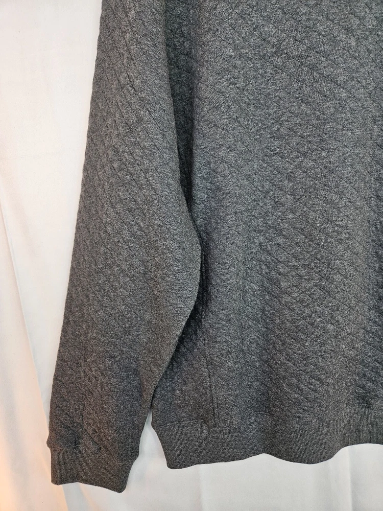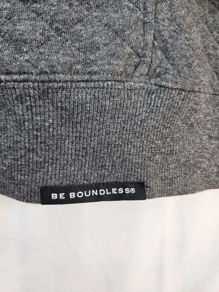 Stay warm and cozy this fall and winter with this men's pullover sweatshirt from Be Boundless. Featuring a quilted texture pattern, this cotton and polyester blend sweatshirt in size XL comes in a stylish gray color with red fabric accents. The V-neckline and front 1/4 snap closure add to its casual comfort, making it perfect for any activity or season. This sweatshirt is machine washable and has a regular fit, making it easy to care for and wear every day. The sweatshirt also includes the brand's signature "Boundless" character and the theme of "Warm & toasty." This sweatshirt is a perfect addition to any wardrobe and is sure to keep you warm and comfortable wherever you go. Kangaroo Pockets Chest 56 Waist 53 Length 28.5 Arm 22 #663 P&E #D 71323