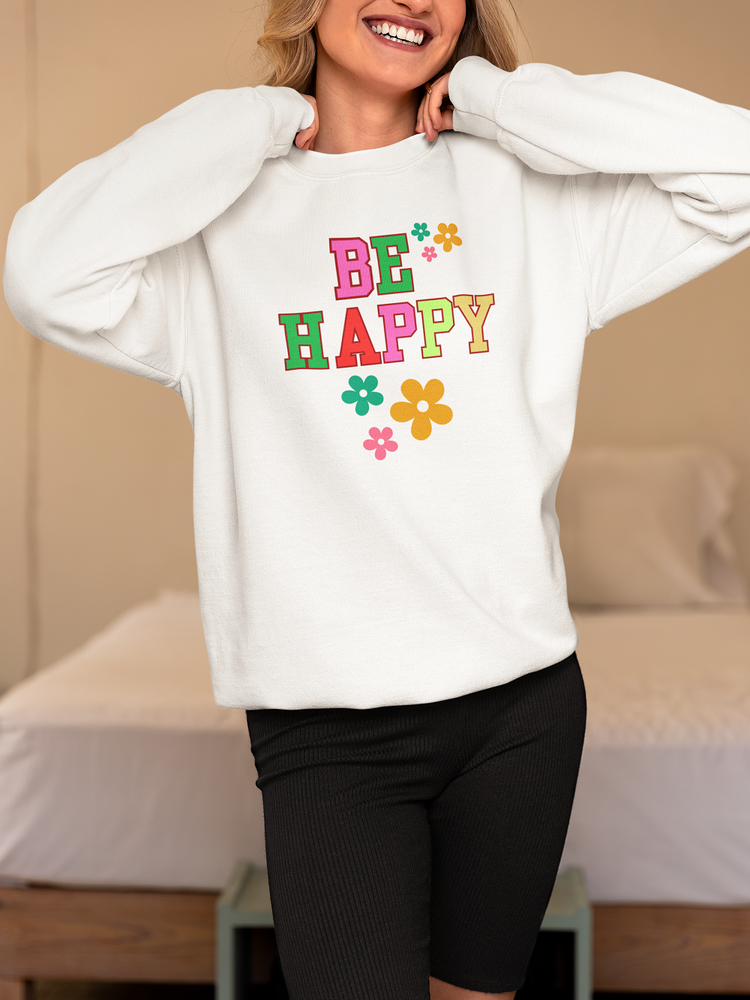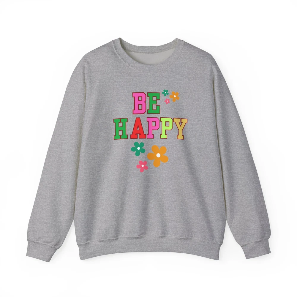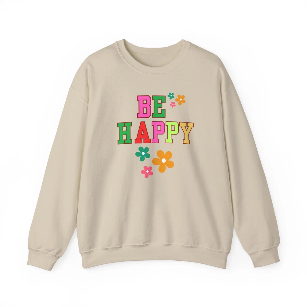The Be Happy Sweatshirt exudes a positive and cheerful vibe, making it perfect for those looking to spread joy and positivity wherever they go. This cozy and comfortable sweatshirt is ideal for adults seeking a relaxed yet stylish look during the colder months. It can be worn casually or dressed up for a fun and uplifting addition to any outfit. Perfect for holidays, casual outings, lounging at home, or spreading happiness on any occasion. Product features - Cozy medium-heavy fabric blend of 50% cotton and 50% polyester - Classic fit with crew neckline for a comfy wearing experience - Top-tier durability with double-needle stitching - Ethically made with 100% US cotton and OEKO-TEX-certified dyes Care instructions - Machine wash: cold (max 30C or 90F) - Non-chlorine: bleach as needed - Tumble dry: low heat - Do not iron - Do not dryclean