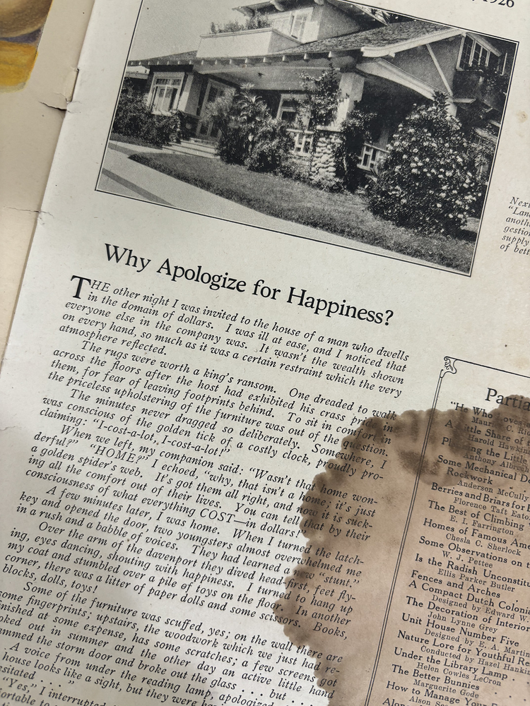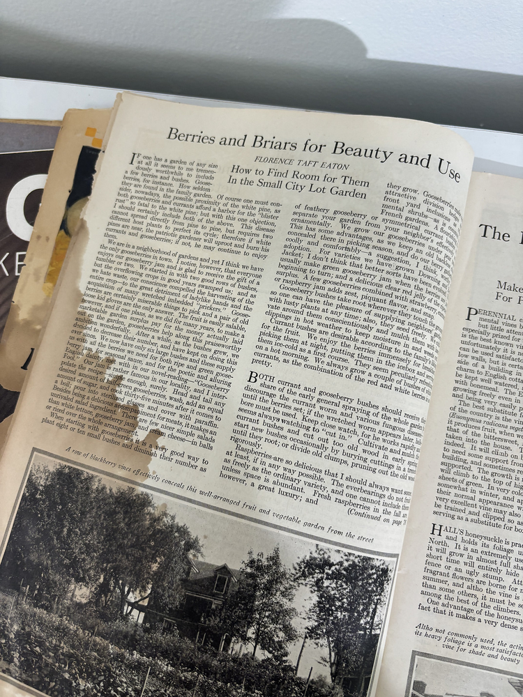 Oh this magazine cover is so beautiful - yes it has a huge liquid stain on it, but still, the Art Deco cover deserves a new home with somehow who will appreciate its beauty. Wonderful articles including about planting berries and briars, and even house plans.