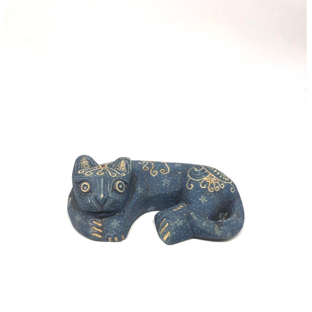 <![CDATA[<div>Beautiful Discontinued Pier 1 Blue Wooden Handpainted Sleeping Cat With Designs. It is 6 inches in length, 3.5 inches in width and 1.5 inches in height....