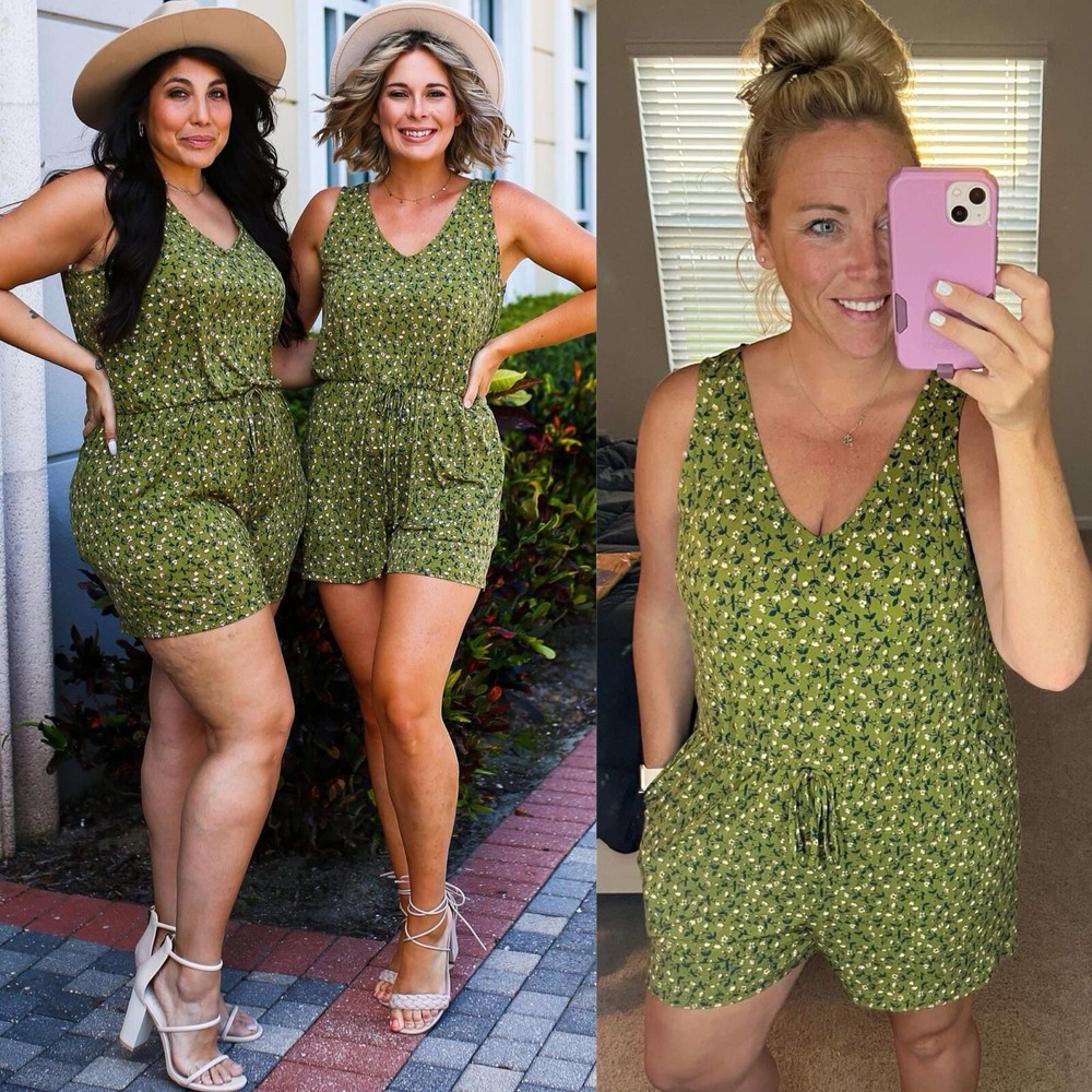 This romper is a dream! The olive green floral print is gorgeous, and the fit is so comfortable—perfect for warm days. Love the pockets, and the material feels light and breathable. Great for casual outings or just lounging in style. Definitely a must-have!