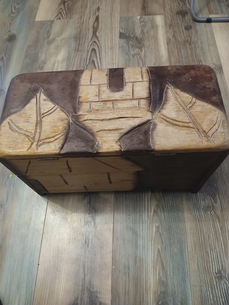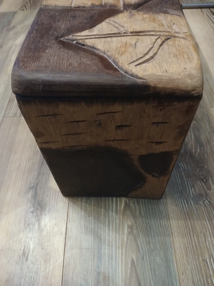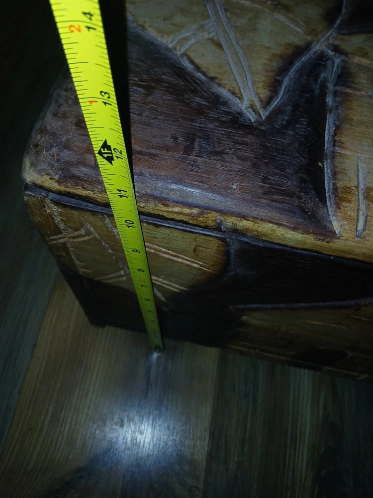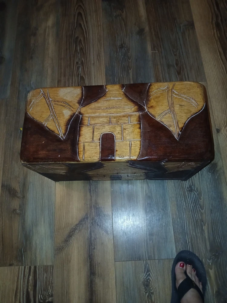 Add a touch of mystique to your room with this Ghanaian Folklore Multiplying Chest. Traditionally believed to have mystical powers that make its contents grow in volume . The chest features intricate carvings and a rustic pattern that gives it a unique charm. Measuring 18 inches in length, 12 inches in height, and 8 inches in width, this medium-sized storage box is perfect for any room and suitable for all occasions. Crafted from wood and finished with an antique touch, this original piece from the late 20th century is a must-have for collectors and art enthusiasts alike. The hinged closure and batch production technique make it easy to use and produce. Clean it with a damp cloth for long-lasting beauty.