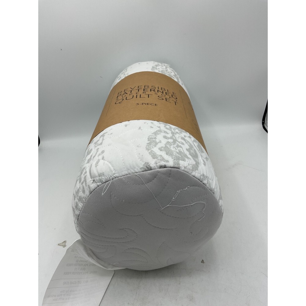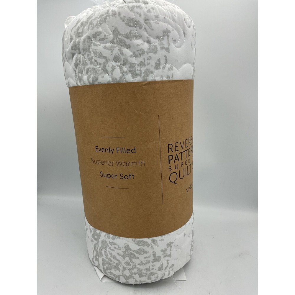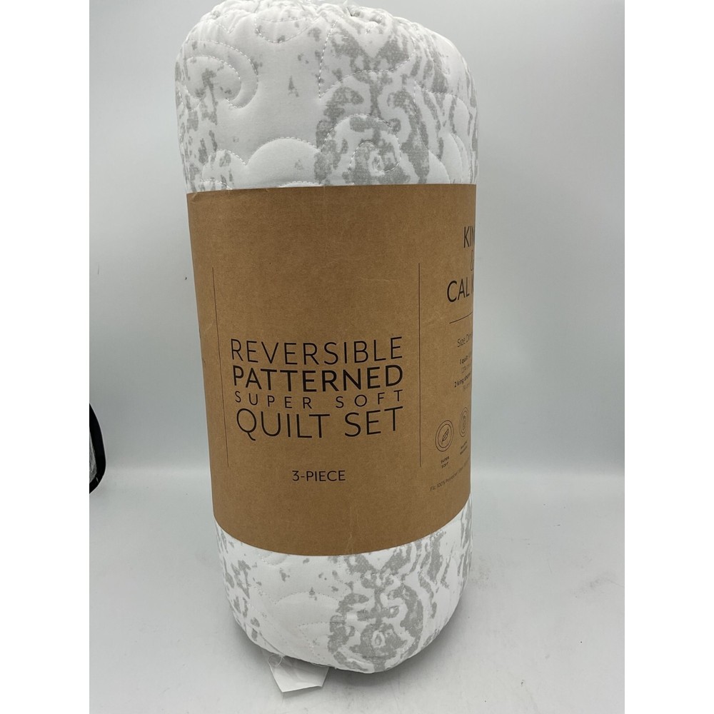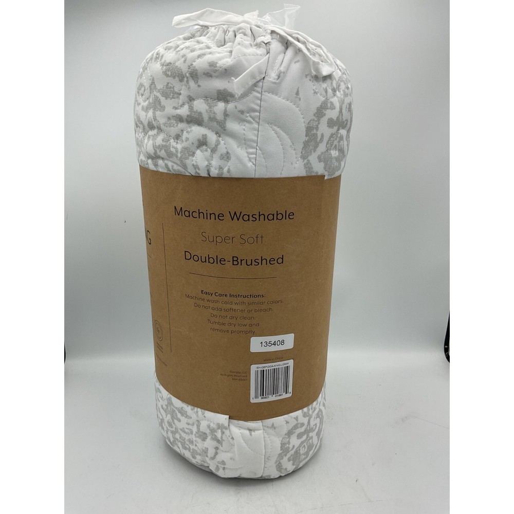 Give your room a comfy new addition with this super soft reversible microfiber quilt and sham set. This set features a classic damask print design on one side and coordinating solid on the reverse side. The beautiful floral quilting pattern adds timeless charm to any bedroom. We've generously filled with artificial down, and each piece is double brushed to give it that super soft, cozy feel. Color: Light Gray. Size: King/California KingUS