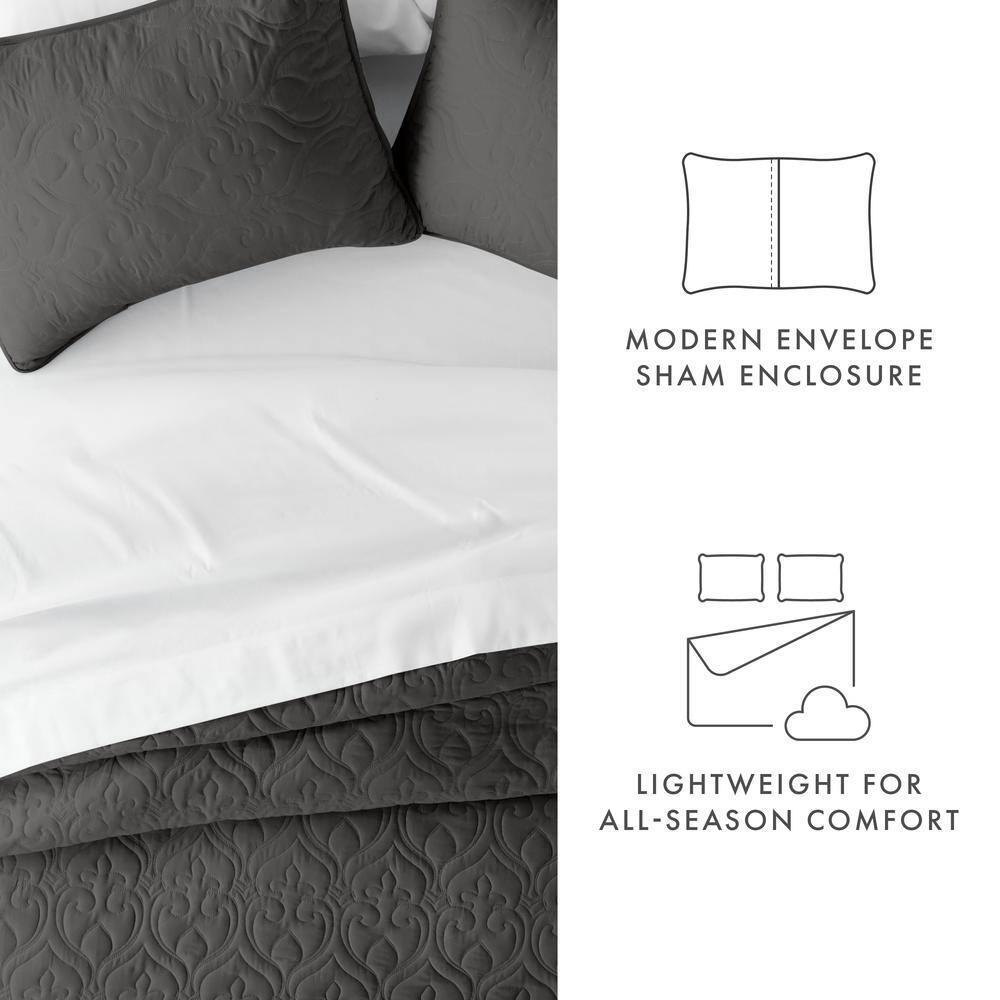 Includes 1 Quilted Coverlet, 2-Shams (Tw set 1-Sham) Hypoallergenic and antimicrobial for sensitive skin Double Brushed Microfiber for comfort and temperature control The Becky Cameron Quilted Coverlet is where casual elegance meets pure uncompromising comfort. Sure to compliment any bedroom style, this beautiful coverlet is available in three timeless patterns. Spun from our premium microfiber yarns, offering twice the durability of cotton and is 100% hypoallergenic. Truly an All Seasons Coverlet, it will keep you warm in the winter and cool in the summer and is sure to add the finishing touch to your tranquil bedroom oasis. Bedding Material: Polyester Care Instructions: Machine Wash Color: Gray Color Family: Gray Decor Type: Bedroom Linen Decorative Accents: No Decorative Accents Features: Hypoallergenic Fill Material: Polyester Lifestage: Adult Linen Type: Coverlet Set Material: Polyester (100%) Material Family: Microfiber Number of Pieces: 3 Origin: Imported Pattern Type: Geometric Returnable: 30-Day Set Includes: Coverlet,Sham Size: King Style: Classic Thread Count: 0 Quilt/Coverlet Length (in.): 96 in Quilt/Coverlet Width (in.): 108 in Sham Length (in.): 20 in Sham Width (in.): 36 in