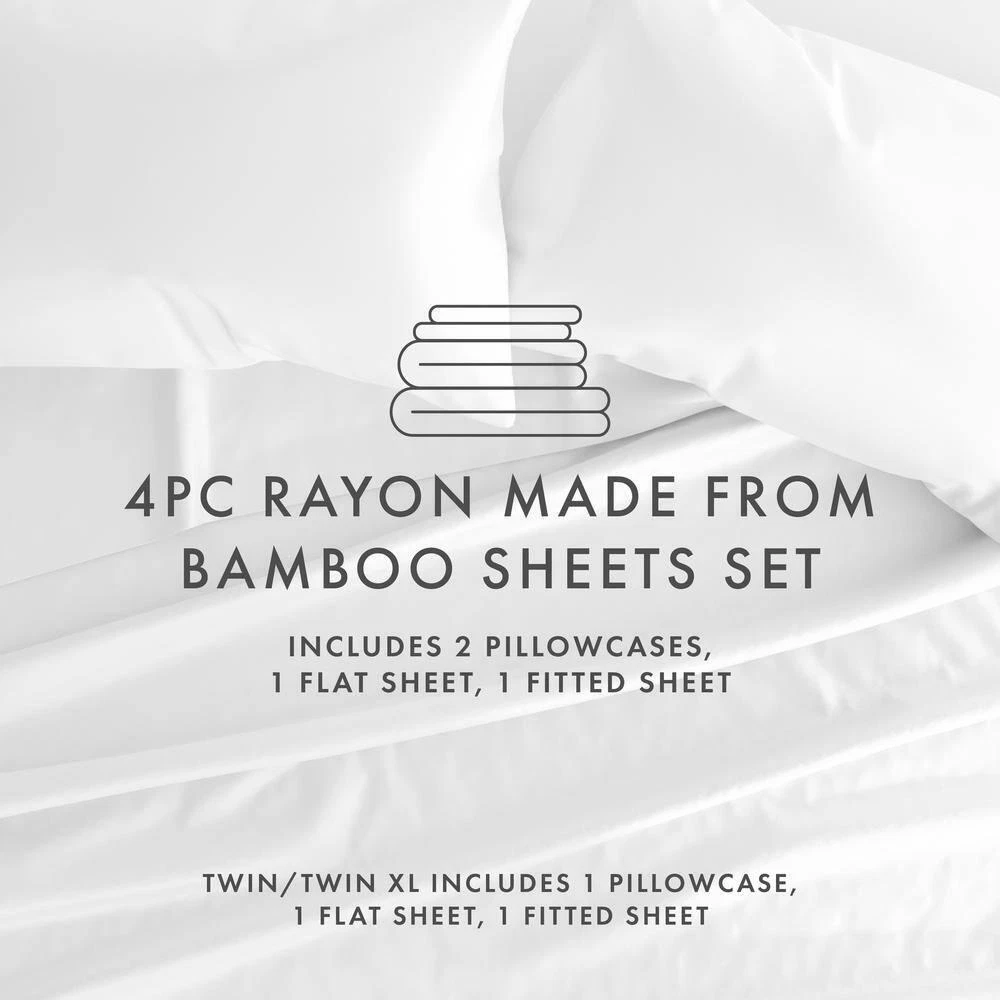 Includes 1-Flat, 1-Fitted, 2-Pcases (TW sets 1-Pcase) 14 in. Deep-Pocket Fitted Sheets The Becky Cameron Sheet Set is the ultimate bedding on the market today. These sheets create a softness unlike you have ever felt before. Satin smoothness and expertly crafted breathability wicks away any sweat or moisture, keeping you dry and comfortable all-night long. You will absolutely love this bedding! We pride ourselves on the high quality of our sheets because we consider your comfort of absolute importance to us. Bedding Material: Rayon from Bamboo Care Instructions: Machine Wash Color: White Color Family: White Decor Type: Bedroom Linen Features: Antimicrobial,Deep Pocket,Hypoallergenic Lifestage: Adult Linen Type: Sheet Set Material: Rayon (100%) Number of Pieces: 4 Occasion: Year Round Origin: Imported Pattern Type: Solid Color Pattern/theme: Solid Pocket Depth (in.): 16 in. Returnable: 30-Day Set Includes: Fitted Sheet,Flat Sheet,Pillow cases Size: Full Thread Count: 300