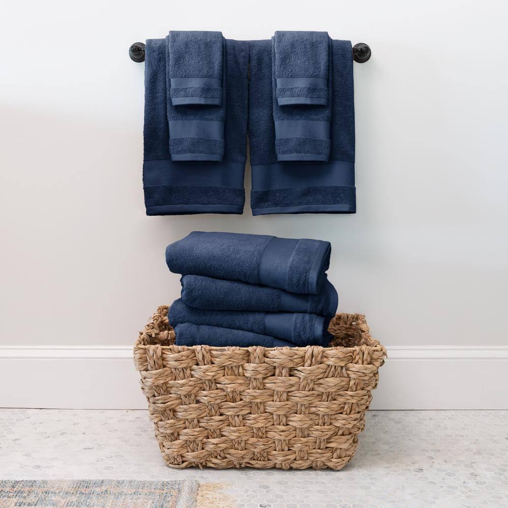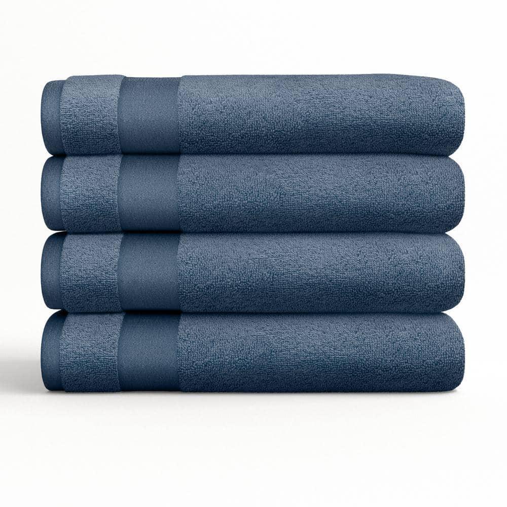 4-Piece Navy Ultra Soft Cotton Bath Towel Set Bath Product Type: Bath Towel Set Color: Navy Color Family: Blue Color/Finish: Navy Decor Type: Bathroom Linen Features: No Additional Features Grams Per Square Meter: 520 Included: Bath Towel Life Stage: Adult (13+) Linen Type: Bath Towel Set Material: Cotton Number of Pieces: 4 Origin: Imported Pattern Type: Solid Returnable : 30-Day Product Length (in.): 54 in Product Width (in.): 30 in Width (in) x Length (in): 30in x 54 in Unparalleled in softness and absorbency, our luxurious 4-piece bath towels set are the perfect addition to your bathroom. Made of 100% cotton, you get the richness of hotel quality in your very own home. The towels are machine washable and maintain that hotel quality no matter how many times they are washed. Our sets come in four elegant colors, making them the ideal choice for both style and necessity.