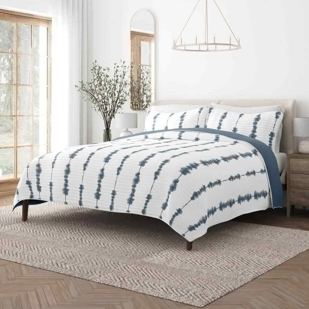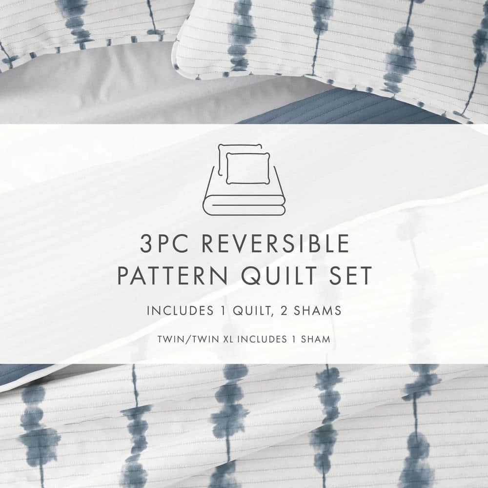Contact Us Add to Favorite Fast Shipping Hassle Free Return eBay Money Back Guarantee Authenticity Guarantee Features Bedding Material: Microfiber Care Instructions: Machine Wash Color: Navy Color Family: Blue Decor Type: Bedroom Linen Decorative Accents: No Decorative Accents Features: Reversible,Soft Fill Material: Polyester Lifestage: Adult Linen Type: Quilt Set Material: Polyester (100%) Material Family: Microfiber Number of Pieces: 3 Pattern Type: Geometric Returnable: 30-Day Set Includes: Quilt,Sham Size: King/Cal King Style: Farmhouse,Modern Quilt/Coverlet Length (in.): 96 in Quilt/Coverlet Width (in.): 108 in Sham Length (in.): 20 in Sham Width (in.): 36 in Item Description Give your room a comfy new addition with this super soft reversible microfiber quilt and sham set. This set features shibori's aesthetic qualities, with the use of indigo colors and printing techniques means that the outcome will always have a unique organic feel. The set reverses to a solid coordinating color, to give you the option for a quick refresh of your space. The beautiful, subtle straight quilting lines adds dimensions to the Shibori design, and adds a gorgeous touch to any bedroom. We've generously filled with artificial down, and each piece is double brushed to give it that super soft, cozy feel. About us Customer service is our top priority! Please be sure to read the description thoroughly to make sure that this is the item you want before making a purchasing decision. If you have any questions about this item, please contact us via eBay messages before placing your order. We make every effort possible to accurately describe and depict the items. Please be aware that slight variations in color may be due to differences in lighting and computer monitor resolutions. All items are in stock at the time of listing; however, in the unlikely and unforeseen event that we are unable to fulfill your order through any of our networked warehouses, we will notify you as quickly as possible and offer you a 100% refund on your purchase. Thank you for shopping with us. We appreciate your business! Payment PayPal is our preferred method of payment. If you do not have a PayPal account, all major credit cards are gladly accepted through PayPal as the payment processor. PayPal offers great buyer and seller protection. Your order will be processed pending receipt of cleared payment through PayPal. Sales tax may be charged depending on your location. Shipping We provide fast, free shipping. Most items are shipped within 3-5 business days of receiving cleared payment. We ship to the lower 48 contiguous United States only. We do not ship to P.O. Boxes or APOs. For select items, we ship internationally through eBay?s Global Shipping Program. We do ship most of our smaller items internationally using eBays Global Shipping Program. If ordering electrical items outside of the U.S., please note that they will come equipped with a standard U.S. voltage plugs. You will need a suitable adapter to use the item in your country. Certain restrictions apply. Standard or Economy Shipping is ALWAYS FREE! You will be notified via eBay messages as soon as your items ship. Special Notice for Freight Items: If an item ships via Freight (Truck) Delivery, a valid phone number will be required so that we can contact you to schedule delivery. The item may be delivered with curbside delivery. An adult signature will be required. Please be sure to have available help on hand to assist you with moving the item to the desired location in or outside of your home. Freight items must be inspected upon delivery. In the unlikely event that damaged is observed, you MUST refuse delivery and note the damage on the shipping receipt and send it back via the Freight carrier. Returns will not be accepted on Freight items after they have been delivered, inspected, and the driver has left the premises. Returns We offer a 30 day return/exchange policy for most of our products. You can request a refund if you are dissatisfied for any reason with your product. (Restocking Fee May Apply). Only factory defects are accepted as a reason for a return. In the case of factory defects, if available, we will replace the product for you. When returning an item, it must be in all of the original packaging and include all of the original accessories or items that came with it. The item and package should be in original and perfect condition. You will be required to cover shipping on the return of non-defective items. All returns MUST be done within 30 days of date of purchase. Please note that we cannot give refunds or replacements after the 30 day limit has expired. When sending in a return, please note that it can take up to 7 business days for the return to be processed. We do our best to process as quickly as possible. We are extremely fair, and in the rare event of something out of the ordinary happening with our products or shipping, we will gladly work with you to find a fair resolution. Disclaimer Were sorry, but we do not honor product exchange requests. If you need to exchange an item received, you will need to go through the normal returns process identified in our returns section and then order the correct item, if it is still available. Orders are processed immediately and dispatched to fulfillment as soon as they are received. For this reason, we are typically unable to honor cancellation requests. If you need to cancel the transaction, please contact us as soon as possible and we will attempt to cancel the order. If the order has gone too far through the fulfillment process, we will be unable to cancel. In that event, you would need to wait until you receive the item and go through the normal returns process as mentioned in the returns section of our policies. Payment Options Shop With Confidence Copyright ©2023, All rights reserved. Listed by Sku Fetch