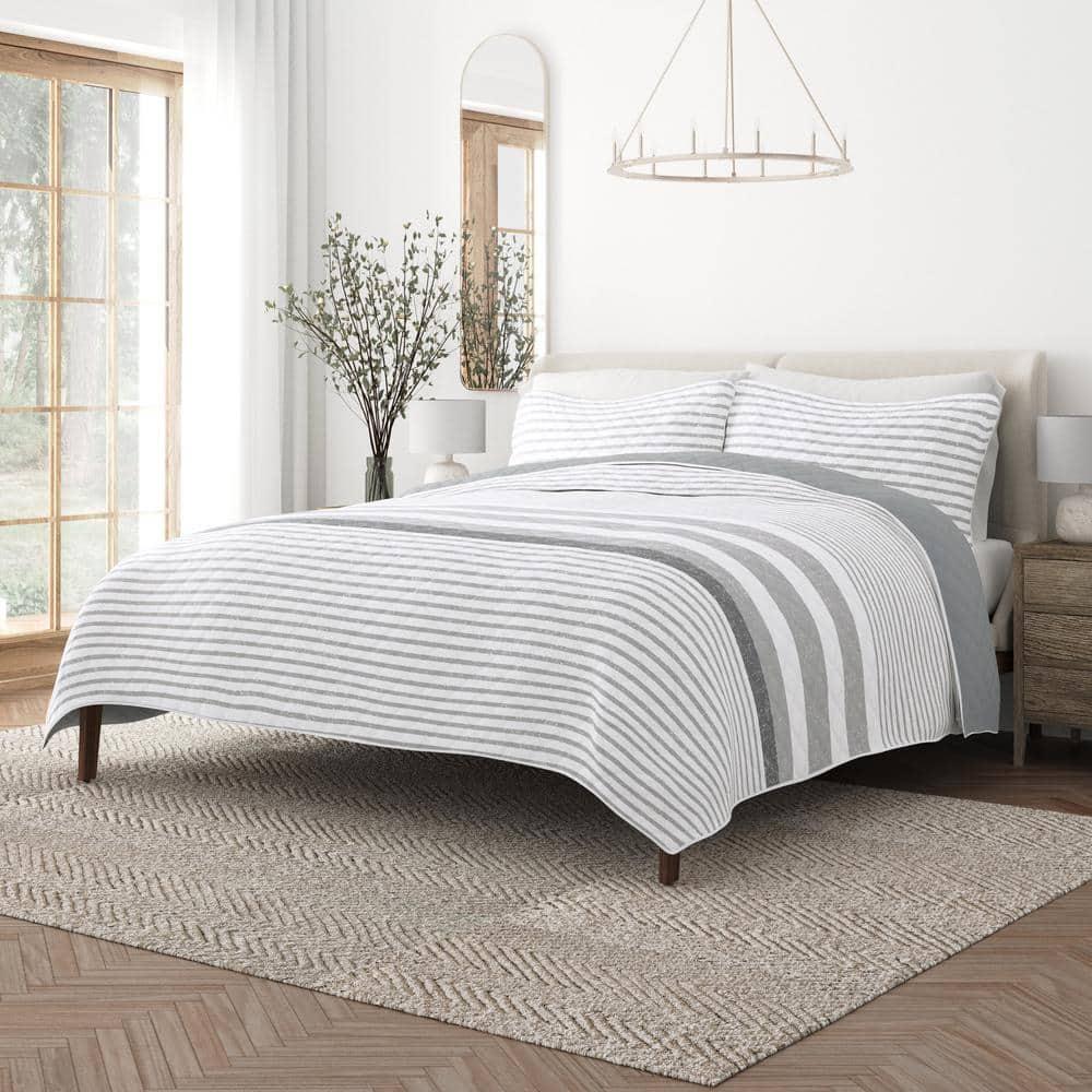 Welcome to Contact Us Add to Favorite Fast Shipping Hassle Free Return eBay Money Back Guarantee Authenticity Guarantee Features Reversible feature for versatile style Generously filled with artificial down for cozy comfort Fade- and wrinkle-resistant features ensure durability Item Description Give your room a comfy new addition with this super soft reversible microfiber quilt and sham set. This set features regatta thick and thin stripes and diamond quilting in relaxed natural colors. The beautiful, subtle quilting lines adds dimensions to the quilt, and adds a gorgeous touch to any bedroom. We've generously filled with artificial down, and each piece is double brushed to give it that super soft, cozy feel. Bedding Material: Microfiber Care Instructions: Machine Wash Color: Light Gray Color Family: Gray Decor Type: Bedroom Linen Decorative Accents: No Decorative Accents Features: Reversible,Soft Fill Material: Polyester Lifestage: Adult Linen Type: Quilt Set Material: Polyester (100%) Material Family: Microfiber Number of Pieces: 3 Pattern Type: Striped Returnable: 30-Day Set Includes: Quilt,Sham Size: King/Cal King Style: Farmhouse,Modern Thread Count: 0 Quilt/Coverlet Length (in.): 96 in Quilt/Coverlet Width (in.): 108 in Sham Length (in.): 20 in Sham Width (in.): 36 in About us Customer service is our top priority! Please be sure to read the description thoroughly to make sure that this is the item you want before making a purchasing decision. If you have any questions about this item, please contact us via eBay messages before placing your order. We make every effort possible to accurately describe and depict the items. Please be aware that slight variations in color may be due to differences in lighting and computer monitor resolutions. All items are in stock at the time of listing; however, in the unlikely and unforeseen event that we are unable to fulfill your order through any of our networked warehouses, we will notify you as quickly as possible and offer you a 100% refund on your purchase. Thank you for shopping with us. We appreciate your business! Payment PayPal is our preferred method of payment. If you do not have a PayPal account, all major credit cards are gladly accepted through PayPal as the payment processor. PayPal offers great buyer and seller protection. Your order will be processed pending receipt of cleared payment through PayPal. Sales tax may be charged depending on your location. Shipping We provide fast, free shipping. Most items are shipped within 3-5 business days of receiving cleared payment. We ship to the lower 48 contiguous United States only. We do not ship to P.O. Boxes or APOs. For select items, we ship internationally through eBay?s Global Shipping Program. We do ship most of our smaller items internationally using eBays Global Shipping Program. If ordering electrical items outside of the U.S., please note that they will come equipped with a standard U.S. voltage plugs. You will need a suitable adapter to use the item in your country. Certain restrictions apply. Standard or Economy Shipping is ALWAYS FREE! You will be notified via eBay messages as soon as your items ship. Special Notice for Freight Items: If an item ships via Freight (Truck) Delivery, a valid phone number will be required so that we can contact you to schedule delivery. The item may be delivered with curbside delivery. An adult signature will be required. Please be sure to have available help on hand to assist you with moving the item to the desired location in or outside of your home. Freight items must be inspected upon delivery. In the unlikely event that damaged is observed, you MUST refuse delivery and note the damage on the shipping receipt and send it back via the Freight carrier. Returns will not be accepted on Freight items after they have been delivered, inspected, and the driver has left the premises. Returns We offer a 30 day return/exchange policy for most of our products. You can request a refund if you are dissatisfied for any reason with your product. (Restocking Fee May Apply). Only factory defects are accepted as a reason for a return. In the case of factory defects, if available, we will replace the product for you. When returning an item, it must be in all of the original packaging and include all of the original accessories or items that came with it. The item and package should be in original and perfect condition. You will be required to cover shipping on the return of non-defective items. All returns MUST be done within 30 days of date of purchase. Please note that we cannot give refunds or replacements after the 30 day limit has expired. When sending in a return, please note that it can take up to 7 business days for the return to be processed. We do our best to process as quickly as possible. We are extremely fair, and in the rare event of something out of the ordinary happening with our products or shipping, we will gladly work with you to find a fair resolution. Disclaimer Were sorry, but we do not honor product exchange requests. If you need to exchange an item received, you will need to go through the normal returns process identified in our returns section and then order the correct item, if it is still available. Orders are processed immediately and dispatched to fulfillment as soon as they are received. For this reason, we are typically unable to honor cancellation requests. If you need to cancel the transaction, please contact us as soon as possible and we will attempt to cancel the order. If the order has gone too far through the fulfillment process, we will be unable to cancel. In that event, you would need to wait until you receive the item and go through the normal returns process as mentioned in the returns section of our policies. Payment Options Shop With Confidence Copyright ©2023, All rights reserved. Listed by Sku Fetch