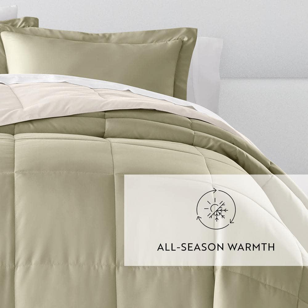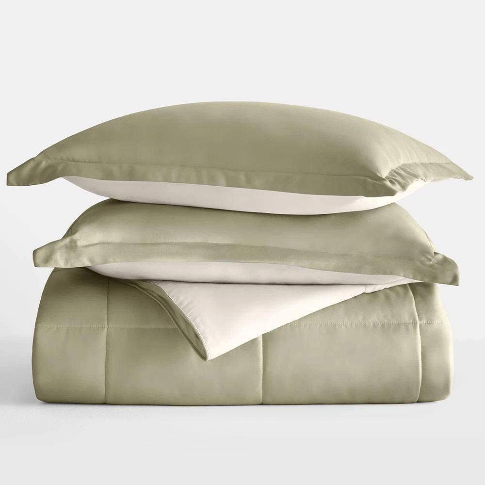 Welcome to Contact Us Add to Favorite Fast Shipping Hassle Free Return eBay Money Back Guarantee Authenticity Guarantee Features Soft fabric provides utmost comfort Made of polyester and microfiber to ensure durable use Reversible design offers versatile styling Item Description Give your bedding a brand new look and feel with this all season reversible down alternative comforter set. Presenting a quality alternative to down, it's incredible loft and down like feel makes it the perfect comforter to keep you cozy all year round. The end to end baffle box construction helps to eliminate the need for regular fluffing by preventing the fibers from shifting. Featuring a reversible design of aesthetically matched colors, this set is ideal for making quick style changes to your sleep space. Bedding Material: Microfiber Care Instructions: Machine Wash Color: Sage & Ivory Color Family: Green Decor Type: Bedroom Linen Decorative Accents: No Decorative Accents Features: Reversible,Soft Fill Material: Polyester Lifestage: Adult Linen Type: Comforter Set Material: Polyester (100%) Material Family: Polyester Number of Pieces: 3 Origin: Imported Pattern Type: Solid Color Returnable: 30-Day Set Includes: Comforter,Sham Size: King/Cal King Style: Cottage,Farmhouse,Minimalist,Modern Thread Count: 0 Comforter Length (in.): 96 in Comforter Width (in.): 108 in Sham Length (in.): 20 in Sham Width (in.): 36 in About us Customer service is our top priority! Please be sure to read the description thoroughly to make sure that this is the item you want before making a purchasing decision. If you have any questions about this item, please contact us via eBay messages before placing your order. We make every effort possible to accurately describe and depict the items. Please be aware that slight variations in color may be due to differences in lighting and computer monitor resolutions. All items are in stock at the time of listing; however, in the unlikely and unforeseen event that we are unable to fulfill your order through any of our networked warehouses, we will notify you as quickly as possible and offer you a 100% refund on your purchase. Thank you for shopping with us. We appreciate your business! Payment PayPal is our preferred method of payment. If you do not have a PayPal account, all major credit cards are gladly accepted through PayPal as the payment processor. PayPal offers great buyer and seller protection. Your order will be processed pending receipt of cleared payment through PayPal. Sales tax may be charged depending on your location. Shipping We provide fast, free shipping. Most items are shipped within 3-5 business days of receiving cleared payment. We ship to the lower 48 contiguous United States only. We do not ship to P.O. Boxes or APOs. For select items, we ship internationally through eBay?s Global Shipping Program. We do ship most of our smaller items internationally using eBays Global Shipping Program. If ordering electrical items outside of the U.S., please note that they will come equipped with a standard U.S. voltage plugs. You will need a suitable adapter to use the item in your country. Certain restrictions apply. Standard or Economy Shipping is ALWAYS FREE! You will be notified via eBay messages as soon as your items ship. Special Notice for Freight Items: If an item ships via Freight (Truck) Delivery, a valid phone number will be required so that we can contact you to schedule delivery. The item may be delivered with curbside delivery. An adult signature will be required. Please be sure to have available help on hand to assist you with moving the item to the desired location in or outside of your home. Freight items must be inspected upon delivery. In the unlikely event that damaged is observed, you MUST refuse delivery and note the damage on the shipping receipt and send it back via the Freight carrier. Returns will not be accepted on Freight items after they have been delivered, inspected, and the driver has left the premises. Returns We offer a 30 day return/exchange policy for most of our products. You can request a refund if you are dissatisfied for any reason with your product. (Restocking Fee May Apply). Only factory defects are accepted as a reason for a return. In the case of factory defects, if available, we will replace the product for you. When returning an item, it must be in all of the original packaging and include all of the original accessories or items that came with it. The item and package should be in original and perfect condition. You will be required to cover shipping on the return of non-defective items. All returns MUST be done within 30 days of date of purchase. Please note that we cannot give refunds or replacements after the 30 day limit has expired. When sending in a return, please note that it can take up to 7 business days for the return to be processed. We do our best to process as quickly as possible. We are extremely fair, and in the rare event of something out of the ordinary happening with our products or shipping, we will gladly work with you to find a fair resolution. Disclaimer Were sorry, but we do not honor product exchange requests. If you need to exchange an item received, you will need to go through the normal returns process identified in our returns section and then order the correct item, if it is still available. Orders are processed immediately and dispatched to fulfillment as soon as they are received. For this reason, we are typically unable to honor cancellation requests. If you need to cancel the transaction, please contact us as soon as possible and we will attempt to cancel the order. If the order has gone too far through the fulfillment process, we will be unable to cancel. In that event, you would need to wait until you receive the item and go through the normal returns process as mentioned in the returns section of our policies. Payment Options Shop With Confidence Copyright ©2023, All rights reserved. Listed by Sku Fetch