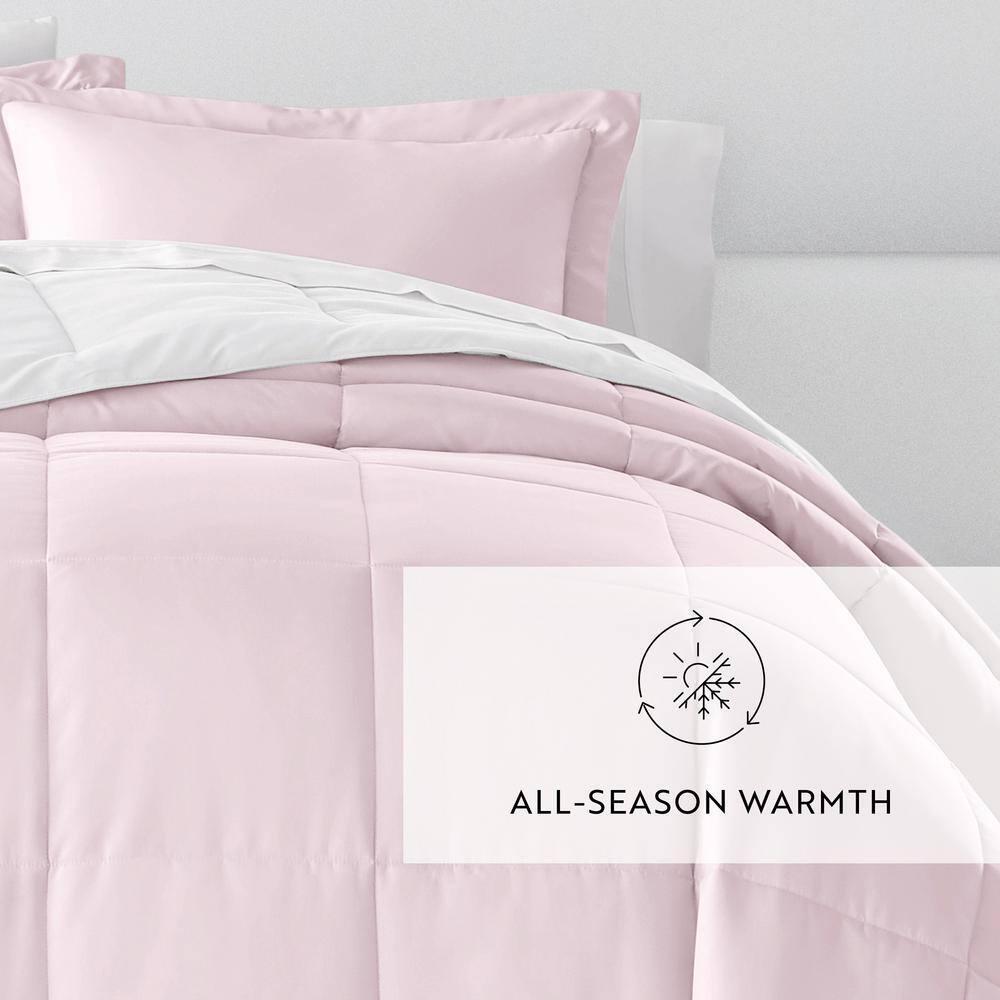 Welcome to Contact Us Add to Favorite Fast Shipping Hassle Free Return eBay Money Back Guarantee Authenticity Guarantee Features Soft fabric provides utmost comfort Made of polyester and microfiber to ensure durable use Reversible design offers versatile styling Item Description Give your bedding a brand new look and feel with this all season reversible down alternative comforter set. Presenting a quality alternative to down, it's incredible loft and down like feel makes it the perfect comforter to keep you cozy all year round. The end to end baffle box construction helps to eliminate the need for regular fluffing by preventing the fibers from shifting. Featuring a reversible design of aesthetically matched colors, this set is ideal for making quick style changes to your sleep space. Bedding Material: Microfiber Care Instructions: Machine Wash Color: Blush & White Color Family: Pink Decor Type: Bedroom Linen Decorative Accents: No Decorative Accents Features: Reversible,Soft Fill Material: Polyester Lifestage: Adult Linen Type: Comforter Set Material: Polyester (100%) Material Family: Polyester Number of Pieces: 3 Origin: Imported Pattern Type: Solid Color Returnable: 30-Day Set : Comforter,Sham Size: King/California King Style: Cottage,Farmhouse,Minimalist,Modern Thread Count: 0 Comforter Length (in.): 96 in Comforter Width (in.): 108 in Sham Length (in.): 20 in Sham Width (in.): 36 in About us Customer service is our top priority! Please be sure to read the description thoroughly to make sure that this is the item you want before making a purchasing decision. If you have any questions about this item, please contact us via eBay messages before placing your order. We make every effort possible to accurately describe and depict the items. Please be aware that slight variations in color may be due to differences in lighting and computer monitor resolutions. All items are in stock at the time of listing; however, in the unlikely and unforeseen event that we are unable to fulfill your order through any of our networked warehouses, we will notify you as quickly as possible and offer you a 100% refund on your purchase. Thank you for shopping with us. We appreciate your business! Payment PayPal is our preferred method of payment. If you do not have a PayPal account, all major credit cards are gladly accepted through PayPal as the payment processor. PayPal offers great buyer and seller protection. Your order will be processed pending receipt of cleared payment through PayPal. Sales tax may be charged depending on your location. Shipping We provide fast, free shipping. Most items are shipped within 3-5 business days of receiving cleared payment. We ship to the lower 48 contiguous United States only. We do not ship to P.O. Boxes or APOs. For select items, we ship internationally through eBays Global Shipping Program. We do ship most of our smaller items internationally using eBays Global Shipping Program. If ordering electrical items outside of the U.S., please note that they will come equipped with a standard U.S. voltage plugs. You will need a suitable adapter to use the item in your country. Certain restrictions apply. Standard or Economy Shipping is ALWAYS FREE! You will be notified via eBay messages as soon as your items ship. Special Notice for Freight Items: If an item ships via Freight (Truck) Delivery, a valid phone number will be required so that we can contact you to schedule delivery. The item may be delivered with curbside delivery. An adult signature will be required. Please be sure to have available help on hand to assist you with moving the item to the desired location in or outside of your home. Freight items must be inspected upon delivery. In the unlikely event that damaged is observed, you MUST refuse delivery and note the damage on the shipping receipt and send it back via the Freight carrier. Returns will not be accepted on Freight items after they have been delivered, inspected, and the driver has left the premises. Returns We offer a 30 day return/exchange policy for most of our products. You can request a refund if you are dissatisfied for any reason with your product. (Restocking Fee May Apply). Only factory defects are accepted as a reason for a return. In the case of factory defects, if available, we will replace the product for you. When returning an item, it must be in all of the original packaging and include all of the original accessories or items that came with it. The item and package should be in original and perfect condition. You will be required to cover shipping on the return of non-defective items. All returns MUST be done within 30 days of date of purchase. Please note that we cannot give refunds or replacements after the 30 day limit has expired. When sending in a return, please note that it can take up to 7 business days for the return to be processed. We do our best to process as quickly as possible. We are extremely fair, and in the rare event of something out of the ordinary happening with our products or shipping, we will gladly work with you to find a fair resolution. Disclaimer Were sorry, but we do not honor product exchange requests. If you need to exchange an item received, you will need to go through the normal returns process identified in our returns section and then order the correct item, if it is still available. Orders are processed immediately and dispatched to fulfillment as soon as they are received. For this reason, we are typically unable to honor cancellation requests. If you need to cancel the transaction, please contact us as soon as possible and we will attempt to cancel the order. If the order has gone too far through the fulfillment process, we will be unable to cancel. In that event, you would need to wait until you receive the item and go through the normal returns process as mentioned in the returns section of our policies. Payment Options Shop With Confidence Copyright ©2023, All rights reserved. Listed by Sku Fetch