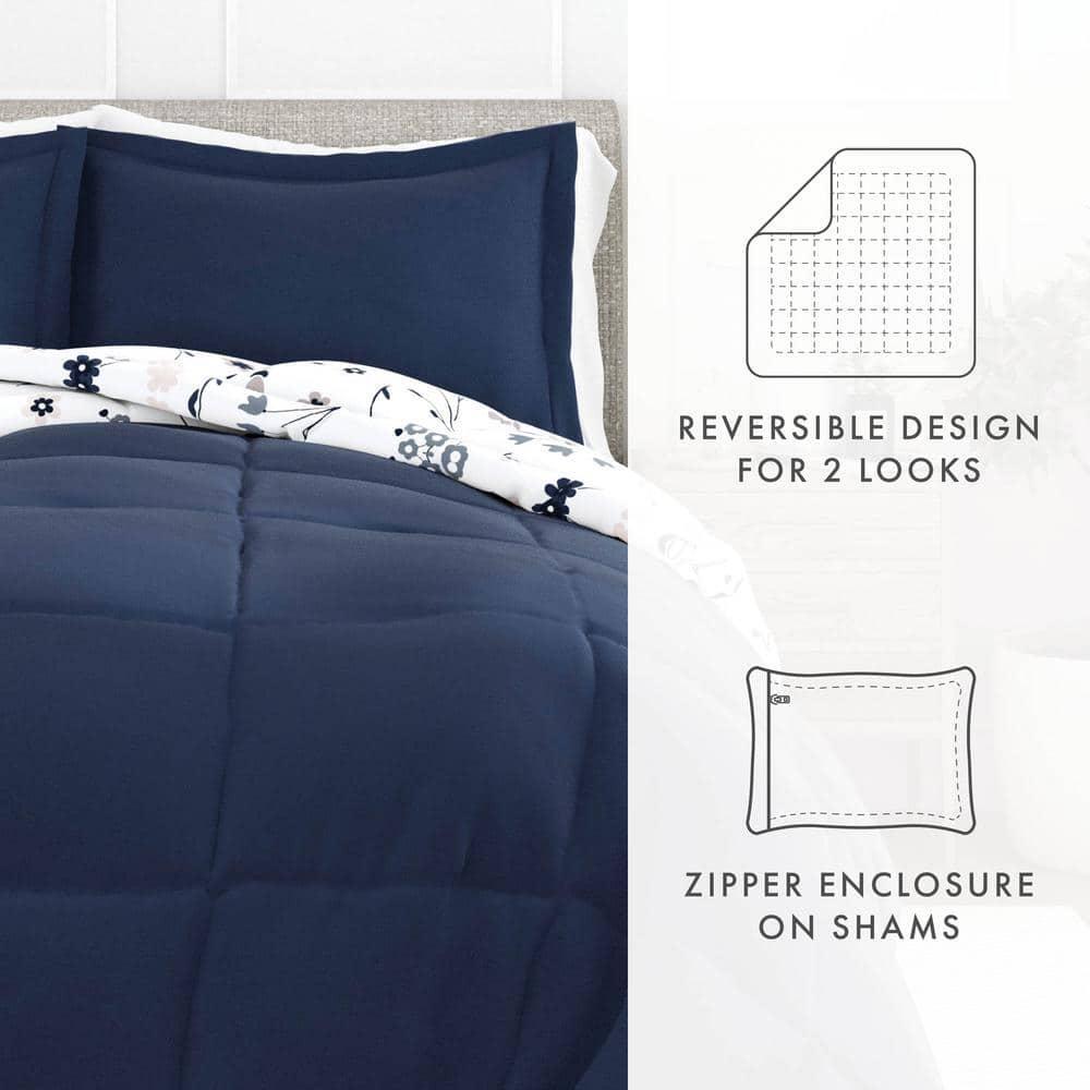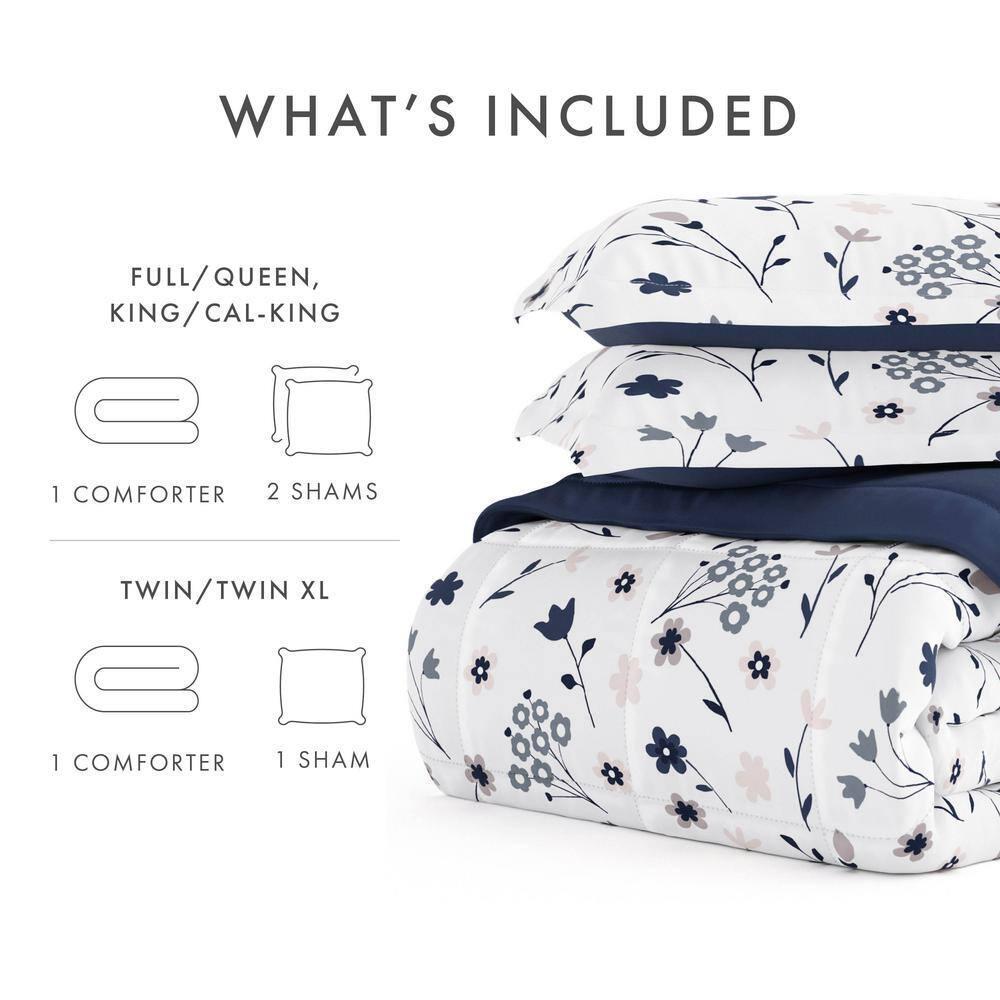 Becky Cameron Comforter Set King/Cal King Soft Microfiber Navy Forget Me Not Reversible design offers a visual appeal to your bedroom Microfiber polyester fabric offers a soft feel against your skin Machine washable for easy maintenance The perfect comforter to keep you cozy all year round. The Down Alternative Forget Me Not Patterned reversible comforter set from the Home Collection features the perfect loft and Down-like feel to keep you warm and toasty while you sleep. Designed for healthy living and 100% hypoallergenic for allergy sufferers, this luxury comforter presents a quality alternative to Down with incredible loft and end to end baffle-box construction, preventing fiber from shifting, eliminating the need for regular fluffing. Bedding Material: Microfiber Care Instructions: Machine Wash Color: Navy Color Family: Blue Decorative Accents: No Decorative Accents Features: Hypoallergenic,Reversible,Soft Fill Material: Down Alternative Lifestage: Adult Linen Type: Comforter Only Material: Polyester (100%) Material Family: Microfiber Number of Pieces: 3 Origin: Imported Pattern Type: Floral Returnable: 30-Day Size: King/Cal King Style: Basics,Casual,Classic,Contemporary,Farmhouse,Industrial,Mediterranean,Mid-Century,Minimalist,Modern,Rustic,Style,Traditional,Vintage Thread Count: 0 Product Length (in.): 96 in Product Width (in.): 108 in