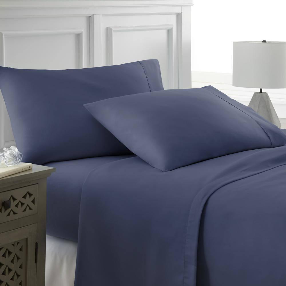 1-Flat, 1-Fitted, 2-Pcases (TW sets 1-Pcase) 16 in. Deep-Pocket Fitted Sheets Hypoallergenic and antimicrobial for sensitive skin The 4-Piece Classic Sheet Set by Becky Cameron is designed with your comfort in mind. Made of the finest imported double-brushed microfiber yarns creating a new standard in softness and breathability, this sheet set will make it incredibly hard to get out of bed in the morning. Our premium yarns are 2-times more durable than cotton, completely wrinkle free, and perfect for all seasons. Bedding Material: Microfiber Care Instructions: Machine Wash Color: Navy Color Family: Blue Decor Type: Bedroom Linen Features: Antimicrobial,Deep Pocket,Hypoallergenic Lifestage: Adult Linen Type: Sheet Set Material: Polyester (100%) Number of Pieces: 4 Occasion: Year Round Origin: Imported Pattern Type: Solid Color Pattern/theme: Solid Pocket Depth (in.): 16 in. Returnable: 30-Day Set : Fitted Sheet,Flat Sheet,Pillow cases Size: King Thread Count: 300