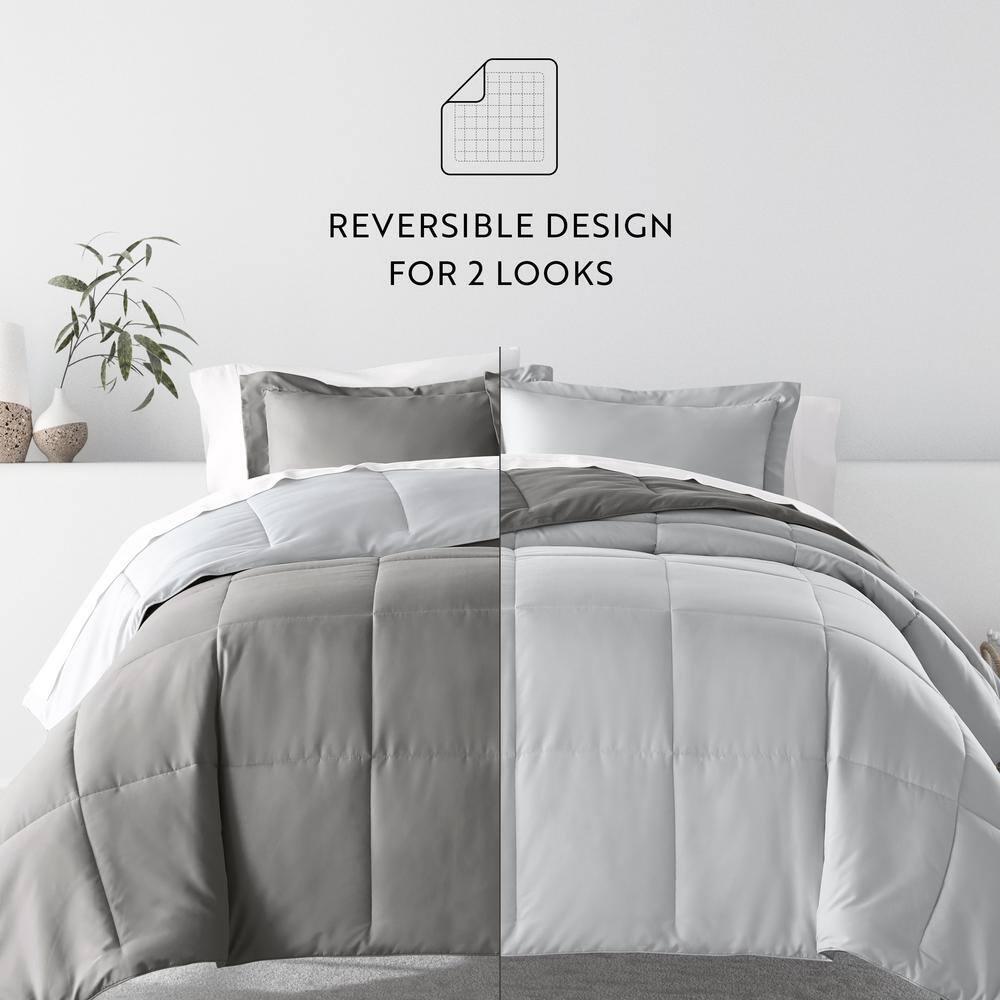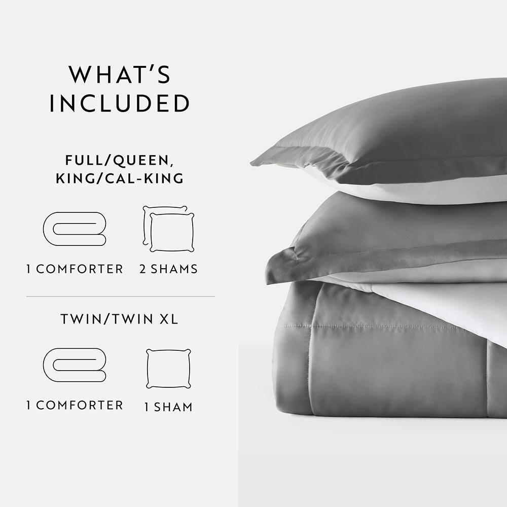 Contact Us Add to Favorite Fast Shipping Hassle Free Return eBay Money Back Guarantee Authenticity Guarantee Features Soft fabric provides utmost comfort Made of polyester and microfiber to ensure durable use Reversible design offers versatile styling Item Description Give your bedding a brand new look and feel with this all season reversible down alternative comforter set. Presenting a quality alternative to down, it's incredible loft and down like feel makes it the perfect comforter to keep you cozy all year round. The end to end baffle box construction helps to eliminate the need for regular fluffing by preventing the fibers from shifting. Featuring a reversible design of aesthetically matched colors, this set is ideal for making quick style changes to your sleep space. Bedding Material: Microfiber Care Instructions: Machine Wash Color: Gray & Light Gray Color Family: Gray Decor Type: Bedroom Linen Decorative Accents: No Decorative Accents Features: Reversible,Soft Fill Material: Polyester Lifestage: Adult Linen Type: Comforter Set Material: Polyester (100%) Material Family: Polyester Number of Pieces: 3 Origin: Imported Pattern Type: Solid Color Returnable: 30-Day Set Includes: Comforter,Sham Size: King/Cal King Style: Cottage,Farmhouse,Minimalist,Modern Thread Count: 0 Comforter Length (in.): 96 in Comforter Width (in.): 108 in Sham Length (in.): 20 in Sham Width (in.): 36 in About us Customer service is our top priority! Please be sure to read the description thoroughly to make sure that this is the item you want before making a purchasing decision. If you have any questions about this item, please contact us via eBay messages before placing your order. We make every effort possible to accurately describe and depict the items. Please be aware that slight variations in color may be due to differences in lighting and computer monitor resolutions. All items are in stock at the time of listing; however, in the unlikely and unforeseen event that we are unable to fulfill your order through any of our networked warehouses, we will notify you as quickly as possible and offer you a 100% refund on your purchase. Thank you for shopping with us. We appreciate your business! Payment PayPal is our preferred method of payment. If you do not have a PayPal account, all major credit cards are gladly accepted through PayPal as the payment processor. PayPal offers great buyer and seller protection. Your order will be processed pending receipt of cleared payment through PayPal. Sales tax may be charged depending on your location. Shipping We provide fast, free shipping. Most items are shipped within 3-5 business days of receiving cleared payment. We ship to the lower 48 contiguous United States only. We do not ship to P.O. Boxes or APOs. For select items, we ship internationally through eBay?s Global Shipping Program. We do ship most of our smaller items internationally using eBays Global Shipping Program. If ordering electrical items outside of the U.S., please note that they will come equipped with a standard U.S. voltage plugs. You will need a suitable adapter to use the item in your country. Certain restrictions apply. Standard or Economy Shipping is ALWAYS FREE! You will be notified via eBay messages as soon as your items ship. Special Notice for Freight Items: If an item ships via Freight (Truck) Delivery, a valid phone number will be required so that we can contact you to schedule delivery. The item may be delivered with curbside delivery. An adult signature will be required. Please be sure to have available help on hand to assist you with moving the item to the desired location in or outside of your home. Freight items must be inspected upon delivery. In the unlikely event that damaged is observed, you MUST refuse delivery and note the damage on the shipping receipt and send it back via the Freight carrier. Returns will not be accepted on Freight items after they have been delivered, inspected, and the driver has left the premises. Returns We offer a 30 day return/exchange policy for most of our products. You can request a refund if you are dissatisfied for any reason with your product. (Restocking Fee May Apply). Only factory defects are accepted as a reason for a return. In the case of factory defects, if available, we will replace the product for you. When returning an item, it must be in all of the original packaging and include all of the original accessories or items that came with it. The item and package should be in original and perfect condition. You will be required to cover shipping on the return of non-defective items. All returns MUST be done within 30 days of date of purchase. Please note that we cannot give refunds or replacements after the 30 day limit has expired. When sending in a return, please note that it can take up to 7 business days for the return to be processed. We do our best to process as quickly as possible. We are extremely fair, and in the rare event of something out of the ordinary happening with our products or shipping, we will gladly work with you to find a fair resolution. Disclaimer Were sorry, but we do not honor product exchange requests. If you need to exchange an item received, you will need to go through the normal returns process identified in our returns section and then order the correct item, if it is still available. Orders are processed immediately and dispatched to fulfillment as soon as they are received. For this reason, we are typically unable to honor cancellation requests. If you need to cancel the transaction, please contact us as soon as possible and we will attempt to cancel the order. If the order has gone too far through the fulfillment process, we will be unable to cancel. In that event, you would need to wait until you receive the item and go through the normal returns process as mentioned in the returns section of our policies. Payment Options Shop With Confidence Copyright ©2023, All rights reserved. Listed by Sku Fetch
