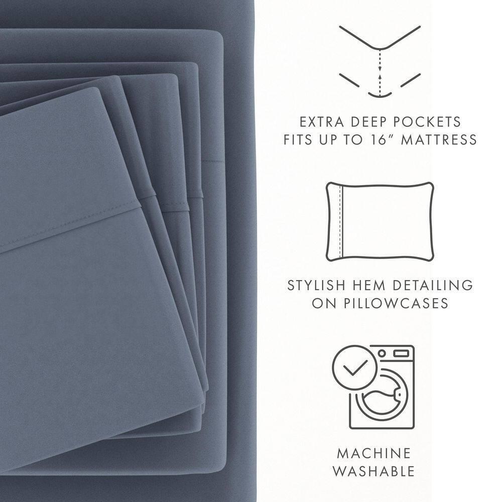 6-Piece Solid Stone Queen Bed Sheet Set Hypoallergenic material ensures health-safe use Double brushed microfiber offers comfortable use Machine washable feature allows easy care The Home Collection 6-Piece sheet set by ienjoy Home is designed with your comfort in mind. Made of the finest imported double-brushed microfiber yarns, creating a new standard in softness and breathability, this 6-piece sheet set will make it incredibly hard to get out of bed in the morning. Our premium yarns are two times more durable than cotton, completely wrinkle free, and perfect for all seasons. Bedding Material: Microfiber Care Instructions: Machine Wash Color: Stone Color Family: Gray Decor Type: Bedroom Linen Features: Deep Pocket,Hypoallergenic,Machine Washable,Soft Lifestage: Adult Linen Type: Sheet Set Material: Polyester (100%) Number of Pieces: 6 Occasion: Year Round Origin: Imported Pattern Type: Solid Color Pattern/theme: Solid Pocket Depth (in.): 14 in. Returnable: 30-Day Set Includes: Fitted Sheet,Flat Sheet,Pillow cases Size: Queen Thread Count: 0