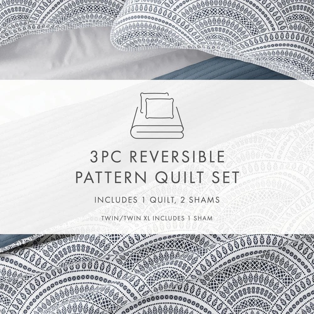 Contact Us Add to Favorite Fast Shipping Hassle Free Return eBay Money Back Guarantee Authenticity Guarantee Features Reversible design enhances bedroom aesthetics Generously filled for a plush and cozy sleeping experience Resists fading and wrinkles to offer enduring beauty Item Description Give your room a comfy new addition with this super soft reversible microfiber quilt and sham set. This set features a playful geometrics and lines come together to create this whimisical scalloped design, reversing to a co-ordinating solid on the back side. The beautiful, subtle straight quilting lines adds dimensions to the quilt, and adds a gorgeous touch to any bedroom. We've generously filled with artificial down, and each piece is double brushed to give it that super soft, cozy feel. Bedding Material: Microfiber Care Instructions: Machine Wash Color: Dusk Blue Color Family: Blue Decor Type: Bedroom Linen Decorative Accents: No Decorative Accents Features: Reversible,Soft Fill Material: Polyester Lifestage: Adult Linen Type: Quilt Set Material: Polyester (100%) Material Family: Microfiber Number of Pieces: 3 Pattern Type: Geometric Returnable: 30-Day Set Includes: Quilt,Sham Size: Full/Queen Style: Farmhouse,Modern Thread Count: 0 Quilt/Coverlet Length (in.): 94 in Quilt/Coverlet Width (in.): 90 in Sham Length (in.): 20 in Sham Width (in.): 26 in About us Customer service is our top priority! Please be sure to read the description thoroughly to make sure that this is the item you want before making a purchasing decision. If you have any questions about this item, please contact us via eBay messages before placing your order. We make every effort possible to accurately describe and depict the items. Please be aware that slight variations in color may be due to differences in lighting and computer monitor resolutions. All items are in stock at the time of listing; however, in the unlikely and unforeseen event that we are unable to fulfill your order through any of our networked warehouses, we will notify you as quickly as possible and offer you a 100% refund on your purchase. Thank you for shopping with us. We appreciate your business! Payment PayPal is our preferred method of payment. If you do not have a PayPal account, all major credit cards are gladly accepted through PayPal as the payment processor. PayPal offers great buyer and seller protection. Your order will be processed pending receipt of cleared payment through PayPal. Sales tax may be charged depending on your location. Shipping We provide fast, free shipping. Most items are shipped within 3-5 business days of receiving cleared payment. We ship to the lower 48 contiguous United States only. We do not ship to P.O. Boxes or APOs. For select items, we ship internationally through eBay?s Global Shipping Program. We do ship most of our smaller items internationally using eBays Global Shipping Program. If ordering electrical items outside of the U.S., please note that they will come equipped with a standard U.S. voltage plugs. You will need a suitable adapter to use the item in your country. Certain restrictions apply. Standard or Economy Shipping is ALWAYS FREE! You will be notified via eBay messages as soon as your items ship. Special Notice for Freight Items: If an item ships via Freight (Truck) Delivery, a valid phone number will be required so that we can contact you to schedule delivery. The item may be delivered with curbside delivery. An adult signature will be required. Please be sure to have available help on hand to assist you with moving the item to the desired location in or outside of your home. Freight items must be inspected upon delivery. In the unlikely event that damaged is observed, you MUST refuse delivery and note the damage on the shipping receipt and send it back via the Freight carrier. Returns will not be accepted on Freight items after they have been delivered, inspected, and the driver has left the premises. Returns We offer a 30 day return/exchange policy for most of our products. You can request a refund if you are dissatisfied for any reason with your product. (Restocking Fee May Apply). Only factory defects are accepted as a reason for a return. In the case of factory defects, if available, we will replace the product for you. When returning an item, it must be in all of the original packaging and include all of the original accessories or items that came with it. The item and package should be in original and perfect condition. You will be required to cover shipping on the return of non-defective items. All returns MUST be done within 30 days of date of purchase. Please note that we cannot give refunds or replacements after the 30 day limit has expired. When sending in a return, please note that it can take up to 7 business days for the return to be processed. We do our best to process as quickly as possible. We are extremely fair, and in the rare event of something out of the ordinary happening with our products or shipping, we will gladly work with you to find a fair resolution. Disclaimer Were sorry, but we do not honor product exchange requests. If you need to exchange an item received, you will need to go through the normal returns process identified in our returns section and then order the correct item, if it is still available. Orders are processed immediately and dispatched to fulfillment as soon as they are received. For this reason, we are typically unable to honor cancellation requests. If you need to cancel the transaction, please contact us as soon as possible and we will attempt to cancel the order. If the order has gone too far through the fulfillment process, we will be unable to cancel. In that event, you would need to wait until you receive the item and go through the normal returns process as mentioned in the returns section of our policies. Payment Options Shop With Confidence Copyright ©2023, All rights reserved. Listed by Sku Fetch