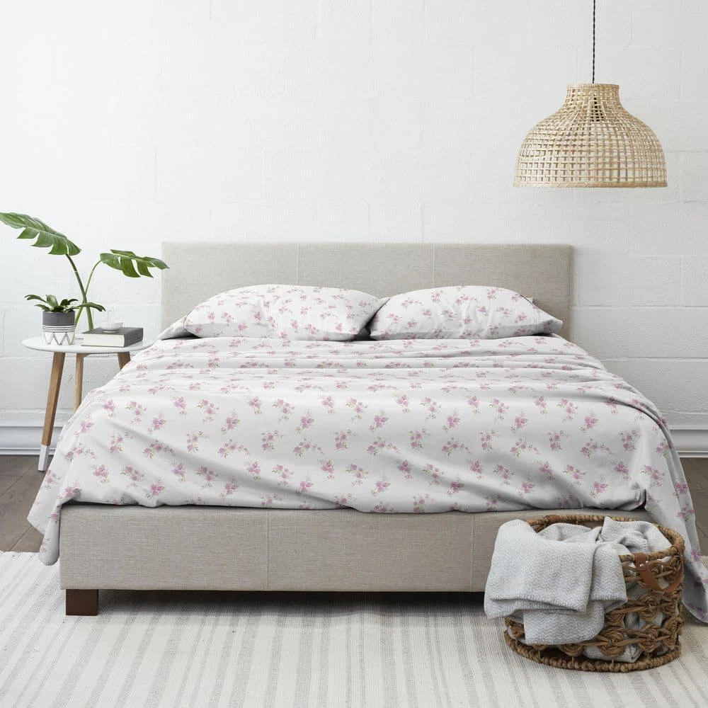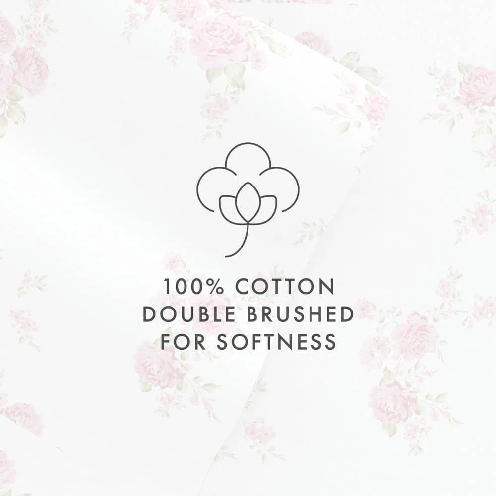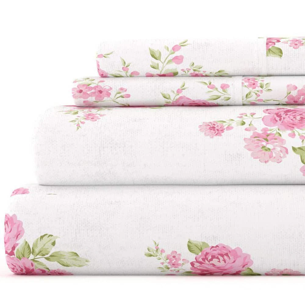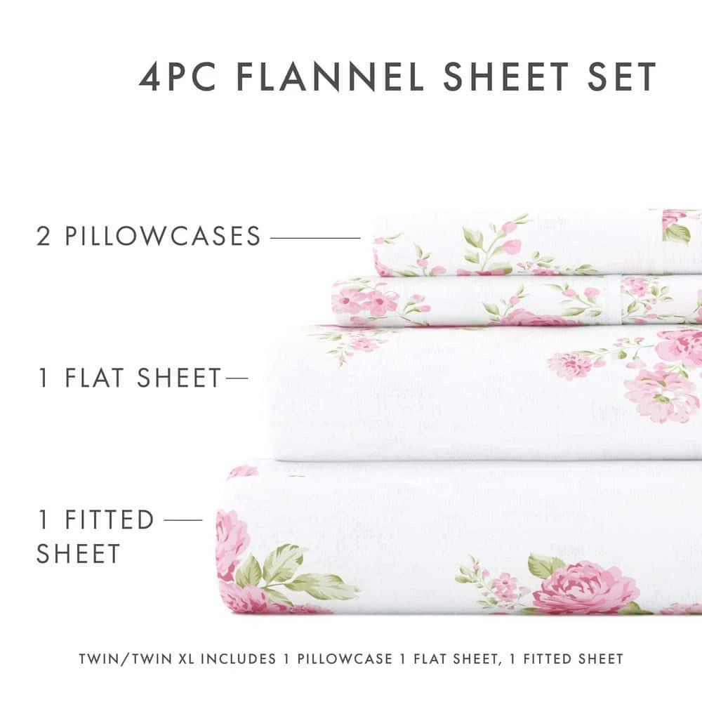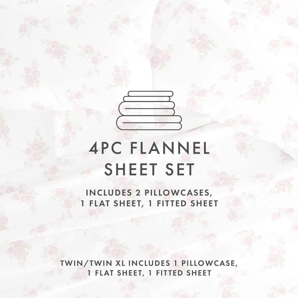 Made of ultra-soft 100% cotton for comfort 14 in. deep pocket fitted sheets for convenience Superior weave for durability and a cozy, soft touch Add a pop of color and warmth to your bedroom decor with this stylish Rose Bunch flannel sheet set available in both Light Blue and Pink. These sheets are finely crafted of 100% cotton. The ultimate softness and dense fabric is specifi call y designed to keep you snuggled up and cozy all night long. Bedding Material: Flannel Care Instructions: Machine Wash Color: Pink Color Family: Pink Decor Type: Bedroom Linen Features: Deep Pocket,Hypoallergenic,Machine Washable,Soft Lifestage: Adult Linen Type: Sheet Set Material: Cotton (100%) Number of Pieces: 4 Occasion: Year Round Origin: Imported Pattern Type: Floral Pattern/theme: Print Pocket Depth (in.): 14 in. Returnable : 30-Day Set Includes: Fitted Sheet,Flat Sheet,Pillow cases Size: King Thread Count: 82