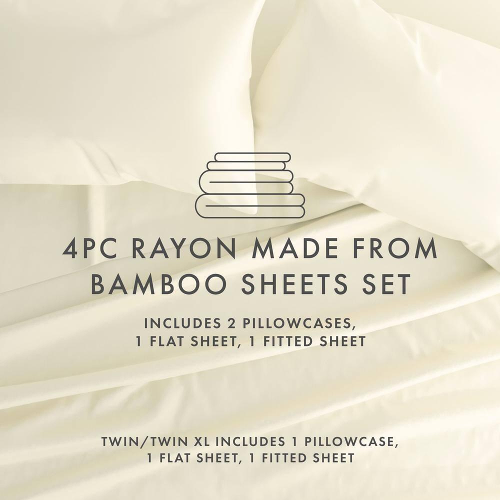 Welcome to Contact Us Add to Favorite Fast Shipping Hassle Free Return eBay Money Back Guarantee Authenticity Guarantee Features Solid color complements various style s of decor Set includes 1 fitted sheet, 1 flat sheet, and 2 pillowcases Item Description Drift off to sleep with this silky smooth bamboo 4 piece sheet set. Made from 100 percent rayon from sustainably sourced bamboo, this set is amazingly soft, naturally breathable and twice as strong as cotton. Available in a variety of colors you're sure to find the perfect set to give your bedding some added comfort and style . Bedding Material: Rayon from Bamboo Care Instructions: Machine Wash Color: Ivory Color Family: White Decor Type: Bedroom Linen Features: Antimicrobial,Deep Pocket,Hypoallergenic Lifestage: Adult Linen Type: Sheet Set Material: Rayon (100%) Number of Pieces: 4 Occasion: Year Round Origin: Imported Pattern Type: Solid Color Pattern/theme: Solid Pocket Depth (in.): 16 in. Returnable : 30-Day Set Includes: Fitted Sheet,Flat Sheet,Pillow cases Size: King Thread Count: 300 About us Customer service is our top priority! Please be sure to read the description thoroughly to make sure that this is the item you want before making a purchasing decision. If you have any questions about this item, please contact us via eBay messages before placing your order. We make every effort possible to accurately describe and depict the items. Please be aware that slight variations in color may be due to differences in lighting and computer monitor resolutions. All items are in stock at the time of listing; however, in the unlikely and unforeseen event that we are unable to fulfill your order through any of our networked warehouses, we will notify you as quickly as possible and offer you a 100% refund on your purchase. Thank you for shopping with us. We appreciate your business! Payment PayPal is our preferred method of payment. If you do not have a PayPal account, all major credit cards are gladly accepted through PayPal as the payment processor. PayPal offers great buyer and seller protection. Your order will be processed pending receipt of cleared payment through PayPal. Sales tax may be charged depending on your location. Shipping We provide fast, free shipping . Most items are shipped within 3-5 business days of receiving cleared payment. We ship to the lower 48 contiguous United States only. We do not ship to P.O. Boxes or APOs. For select items, we ship internationally through eBays Global Shipping Program. We do ship most of our smaller items internationally using eBays Global Shipping Program. If ordering electrical items outside of the U.S., please note that they will come equipped with a standard U.S. voltage plugs. You will need a suitable adapter to use the item in your country. Certain restrictions apply. Standard or Economy Shipping is ALWAYS FREE! You will be notified via eBay messages as soon as your items ship. Special Notice for Freight Items: If an item ships via Freight (Truck) Delivery, a valid phone number will be required so that we can contact you to schedule delivery. The item may be delivered with curbside delivery. An adult signature will be required. Please be sure to have available help on hand to assist you with moving the item to the desired location in or outside of your home. Freight items must be inspected upon delivery. In the unlikely event that damaged is observed, you MUST refuse delivery and note the damage on the shipping receipt and send it back via the Freight carrier. Returns will not be accepted on Freight items after they have been delivered, inspected, and the driver has left the premises. Returns We offer a 30 day return/exchange policy for most of our products. You can request a refund if you are dissatisfied for any reason with your product. (Restocking Fee May Apply). Only factory defects are accepted as a reason for a return. In the case of factory defects, if available , we will replace the product for you. When returning an item, it must be in all of the original packaging and include all of the original accessories or items that came with it. The item and package should be in original and perfect condition. You will be required to cover shipping on the return of non-defective items. All returns MUST be done within 30 days of date of purchase. Please note that we cannot give refunds or replacements after the 30 day limit has expired. When sending in a return, please note that it can take up to 7 business days for the return to be processed. We do our best to process as quickly as possible. We are extremely fair, and in the rare event of something out of the ordinary happening with our products or shipping , we will gladly work with you to find a fair resolution. Disclaimer Were sorry, but we do not honor product exchange requests. If you need to exchange an item received, you will need to go through the normal returns process identified in our returns section and then order the correct item, if it is still available . Orders are processed immediately and dispatched to fulfillment as soon as they are received. For this reason, we are typi call y unable to honor cancellation requests. If you need to cancel the transaction, please contact us as soon as possible and we will attempt to cancel the order. If the order has gone too far through the fulfillment process, we will be unable to cancel. In that event, you would need to wait until you receive the item and go through the normal returns process as mentioned in the returns section of our policies. Payment Options Shop With Confidence Copyright ©2023, All rights reserved. Listed by Sku Fetch