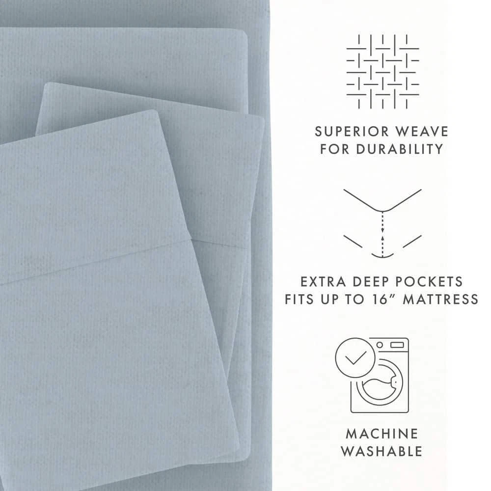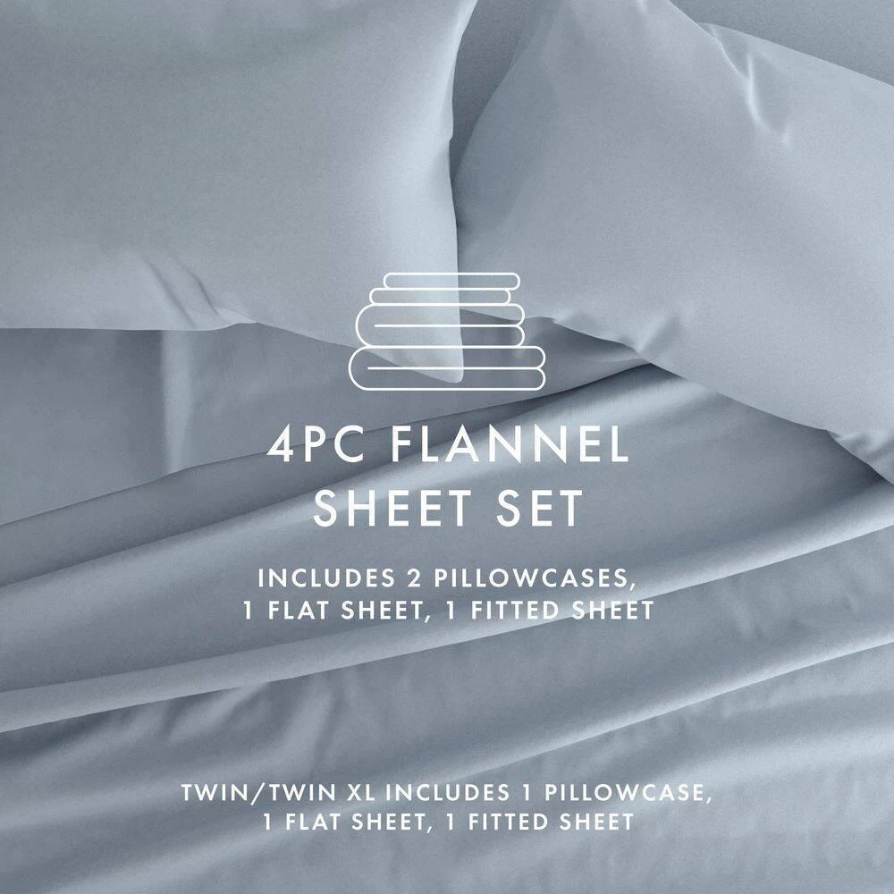 Made from premium quality cotton for durability and softness Superior weave for durability and a breathable soft touch Classic design enhances the visual appeal Sleep soundly in ultimate comfort all through the night in between the coziest flannel sheets ever by ienjoy Home. Made of 100% cotton, these sheets are brushed to bring you super soft and comfy sheets that are machine washable for an easy clean. Our Flannel Sheet Set is available in a range of elegant solid colors to enhance the decor of your bedding. Bedding Material: Flannel Care Instructions: Machine Wash Color: Light Navy Color Family: Blue Decor Type: Bedroom Linen Features: Deep Pocket,Easy Care,Hypoallergenic,Machine Washable,Soft Lifestage: Adult Linen Type: Sheet Set Material: Cotton (100%) Number of Pieces: 4 Occasion: Year Round Origin: Imported Pattern Type: Solid Color Pattern/theme: Solid Pocket Depth (in.): 14 in. Returnable: 30-Day Set Includes: Fitted Sheet,Flat Sheet,Pillow cases Size: King Thread Count: 82