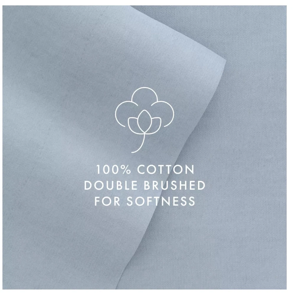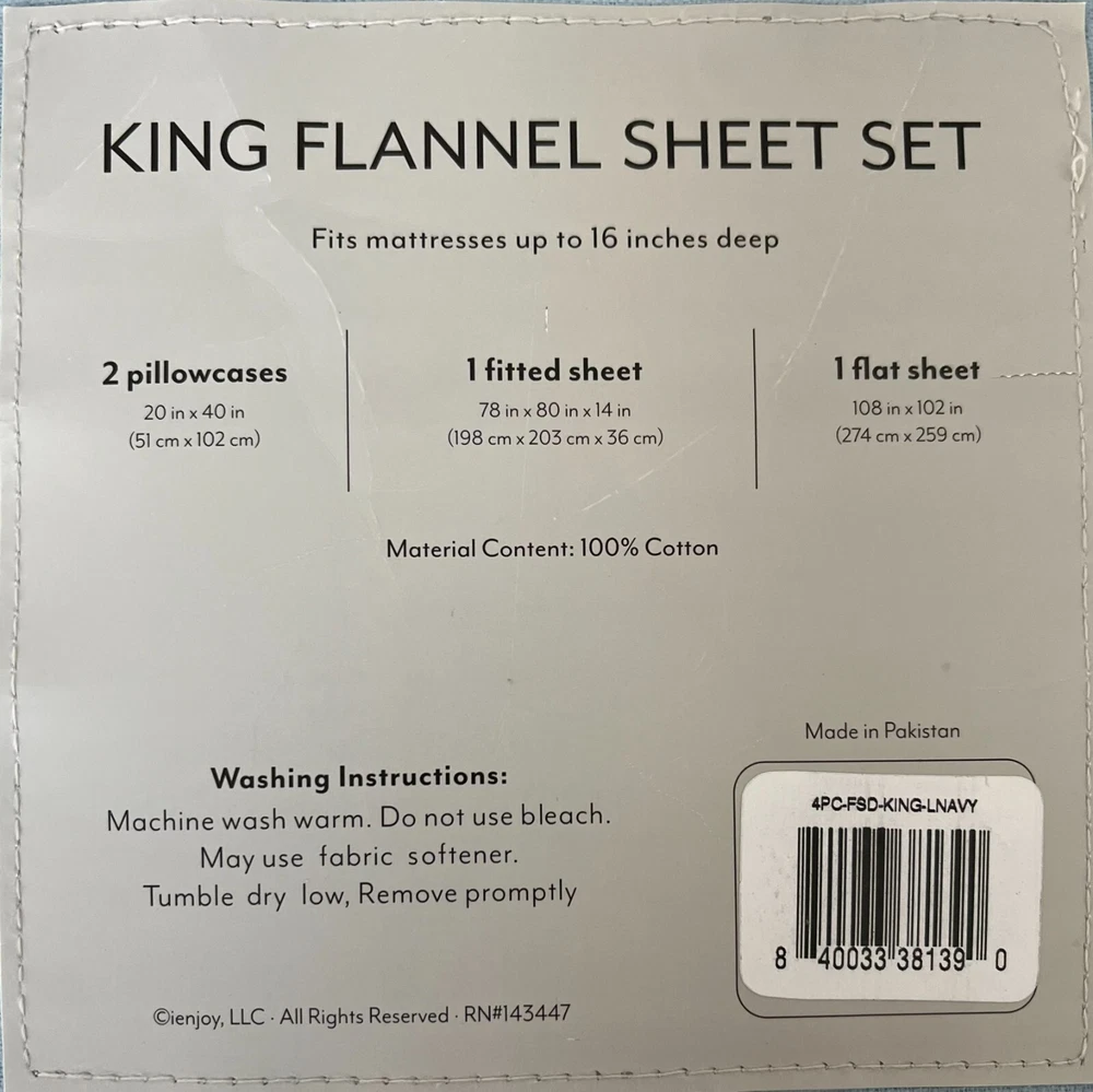 100% Cotton Flannel 4PC Sheet Set Super Soft, Easy Care, Solid Color - Becky Cameron Size King Highlights Made from 100 percent cotton. Set includes one fitted sheet, one flat sheet, and two pillowcases (Twin set includes one pillowcase) 14 in. deep pocket fitted sheets, fits most up to 16-in. deep Easy Care: Machine wash cold, tumble dry low, fade resistant, wrinkle resistant, no ironing necessary; do not bleach, or use fabric softener Superior weave for durability and a breathable soft touch Description Treat yourself to a comfy new set of sheets with this flannel multi-piece sheet set. Made from 100 percent cotton, each piece is double brushed for an ultra soft and cozy feel, making it the perfect new addition to your room! Available in a variety of complimentary colors and patterns.