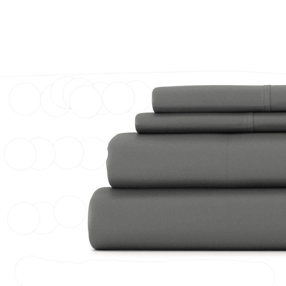 Includes 1-Flat, 1-Fitted, 2-Pcases 14 in. Deep-Pocket Fitted Sheets These sheets create a softness unlike you have ever felt before. Satin smoothness and expertly crafted breathability wicks away any sweat or moisture, keeping you dry and comfortable all-night long. Bedding Material: Rayon from Bamboo Care Instructions: Machine Wash Color: Gray Color Family: Gray Decor Type: Bedroom Linen Features: Antimicrobial,Deep Pocket,Hypoallergenic Lifestage: Adult Linen Type: Sheet Set Material: Rayon (100%) Number of Pieces: 4 Origin: Imported Pattern Type: Solid Color Pattern/theme: Solid Pocket Depth (in.): 16 in. Returnable: 30-Day Set Includes: Fitted Sheet,Flat Sheet,Pillow cases Size: King Thread Count: 300