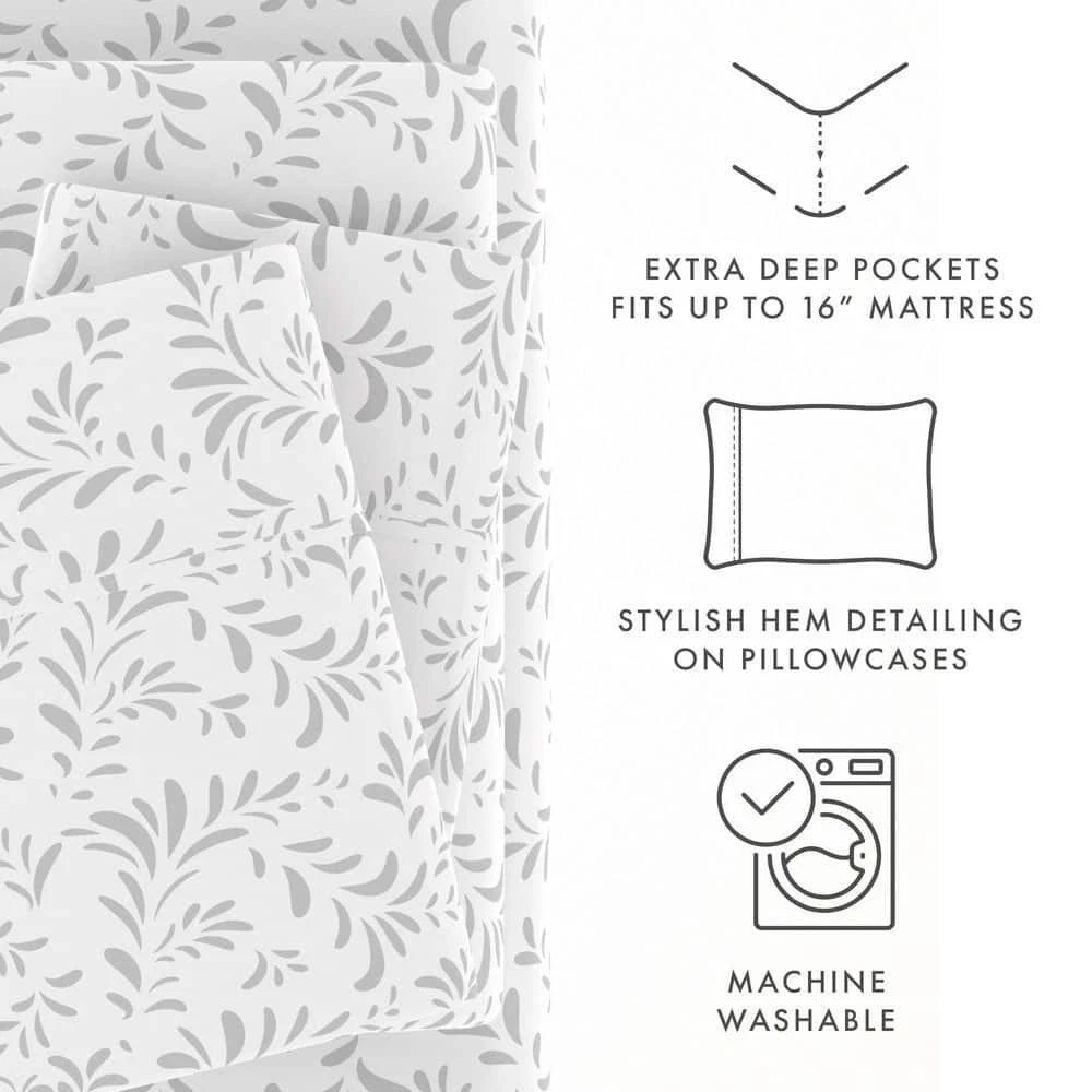 Contact Us Add to Favorite Contact Us Fast Shipping Hassle Free Return eBay Money Back Guarantee Authenticity Guarantee Features 1-Flat, 1-Fitted, 2-Pcases (TW sets 1-Pcase) 16 in. Deep-Pocket Fitted Sheets Hypoallergenic and antimicrobial for sensitive skin Item Description The Becky Cameron Burst of Vines 4-Piece sheet set is designed with your comfort in mind. Add a designer accent to your bedroom decor. Made of the finest imported double-brushed microfiber yarns creating a new standard in softness and breathability, this 4-piece sheet set will make it incredibly hard to get out of bed in the morning. Our premium yarns are two times more durable than cotton, completely wrinkle free, and perfect for all seasons. Bedding Material: Microfiber Care Instructions: Machine Wash Color: Gray Color Family: Gray Decor Type: Bedroom Linen Features: Antimicrobial,Deep Pocket,Hypoallergenic Lifestage: Adult Linen Type: Sheet Set Material: Polyester (100%) Number of Pieces: 4 Occasion: Year Round Origin: Imported Pattern Type: Floral Pattern/theme: Burst of Vines Pocket Depth (in.): 16 in. Returnable: 30-Day Set : Fitted Sheet,Flat Sheet,Pillow cases Size: Queen Thread Count: 20000 About us Customer service is our top priority! Please be sure to read the description thoroughly to make sure that this is the item you want before making a purchasing decision. If you have any questions about this item, please contact us via eBay messages before placing your order. We make every effort possible to accurately describe and depict the items. Please be aware that slight variations in color may be due to differences in lighting and computer monitor resolutions. All items are in stock at the time of listing; however, in the unlikely and unforeseen event that we are unable to fulfill your order through any of our networked warehouses, we will notify you as quickly as possible and offer you a 100% refund on your purchase. Thank you for shopping with us. We appreciate your business! Payment PayPal is our preferred method of payment. If you do not have a PayPal account, all major credit cards are gladly accepted through PayPal as the payment processor. PayPal offers great buyer and seller protection. Your order will be processed pending receipt of cleared payment through PayPal. Sales tax may be charged depending on your location. Shipping We provide fast, free shipping. Most items are shipped within 3-5 business days of receiving cleared payment. We ship to the lower 48 contiguous United States only. We do not ship to P.O. Boxes or APOs. For select items, we ship internationally through eBayâ??s Global Shipping Program. We do ship most of our smaller items internationally using eBays Global Shipping Program. If ordering electrical items outside of the U.S., please note that they will come equipped with a standard U.S. voltage plugs. You will need a suitable adapter to use the item in your country. Certain restrictions apply. Standard or Economy Shipping is ALWAYS FREE! You will be notified via eBay messages as soon as your items ship. Special Notice for Freight Items: If an item ships via Freight (Truck) Delivery, a valid phone number will be required so that we can contact you to schedule delivery. The item may be delivered with curbside delivery. An adult signature will be required. Please be sure to have available help on hand to assist you with moving the item to the desired location in or outside of your home. Freight items must be inspected upon delivery. In the unlikely event that damaged is observed, you MUST refuse delivery and note the damage on the shipping receipt and send it back via the Freight carrier. Returns will not be accepted on Freight items after they have been delivered, inspected, and the driver has left the premises. Returns We offer a 30 day return/exchange policy for most of our products. You can request a refund if you are dissatisfied for any reason with your product. (Restocking Fee May Apply). Only factory defects are accepted as a reason for a return. In the case of factory defects, if available, we will replace the product for you. When returning an item, it must be in all of the original packaging and include all of the original accessories or items that came with it. The item and package should be in original and perfect condition. You will be required to cover shipping on the return of non-defective items. All returns MUST be done within 30 days of date of purchase. Please note that we cannot give refunds or replacements after the 30 day limit has expired. When sending in a return, please note that it can take up to 7 business days for the return to be processed. We do our best to process as quickly as possible. We are extremely fair, and in the rare event of something out of the ordinary happening with our products or shipping, we will gladly work with you to find a fair resolution. Disclaimer Were sorry, but we do not honor product exchange requests. If you need to exchange an item received, you will need to go through the normal returns process identified in our returns section and then order the correct item, if it is still available. Orders are processed immediately and dispatched to fulfillment as soon as they are received. For this reason, we are typically unable to honor cancellation requests. If you need to cancel the transaction, please contact us as soon as possible and we will attempt to cancel the order. If the order has gone too far through the fulfillment process, we will be unable to cancel. In that event, you would need to wait until you receive the item and go through the normal returns process as mentioned in the returns section of our policies. Payment Options Shop With Confidence Copyright ©2023, All rights reserved. Listed by Sku Fetch