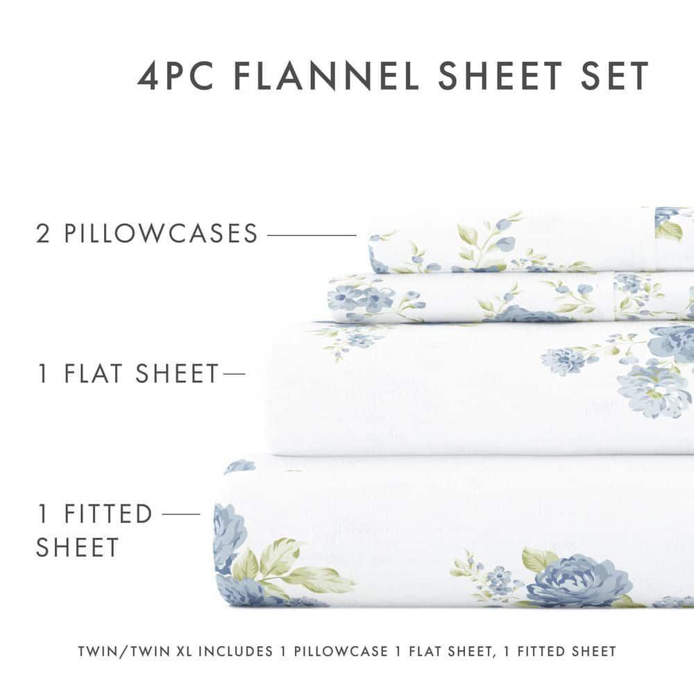 Bedding Material: Flannel Care Instructions: Machine Wash Color: Light Blue Color Family: Blue Decor Type: Bedroom Linen Features: Deep Pocket,Hypoallergenic,Machine Washable,Soft Lifestage: Adult Linen Type: Sheet Set Material: Cotton (100%) Number of Pieces: 4 Occasion: Year Round Origin: Imported Pattern Type: Floral Pattern/theme: Print Pocket Depth (in.): 14 in. Returnable: 30-Day Set Includes: Fitted Sheet,Flat Sheet,Pillow cases Size: Queen Thread Count: 82 Add a pop of color and warmth to your bedroom decor with this stylish Rose Bunch flannel sheet set available in both Light Blue and Pink. These sheets are finely crafted of 100% cotton. The ultimate softness and dense fabric is specifically designed to keep you snuggled up and cozy all night long.
