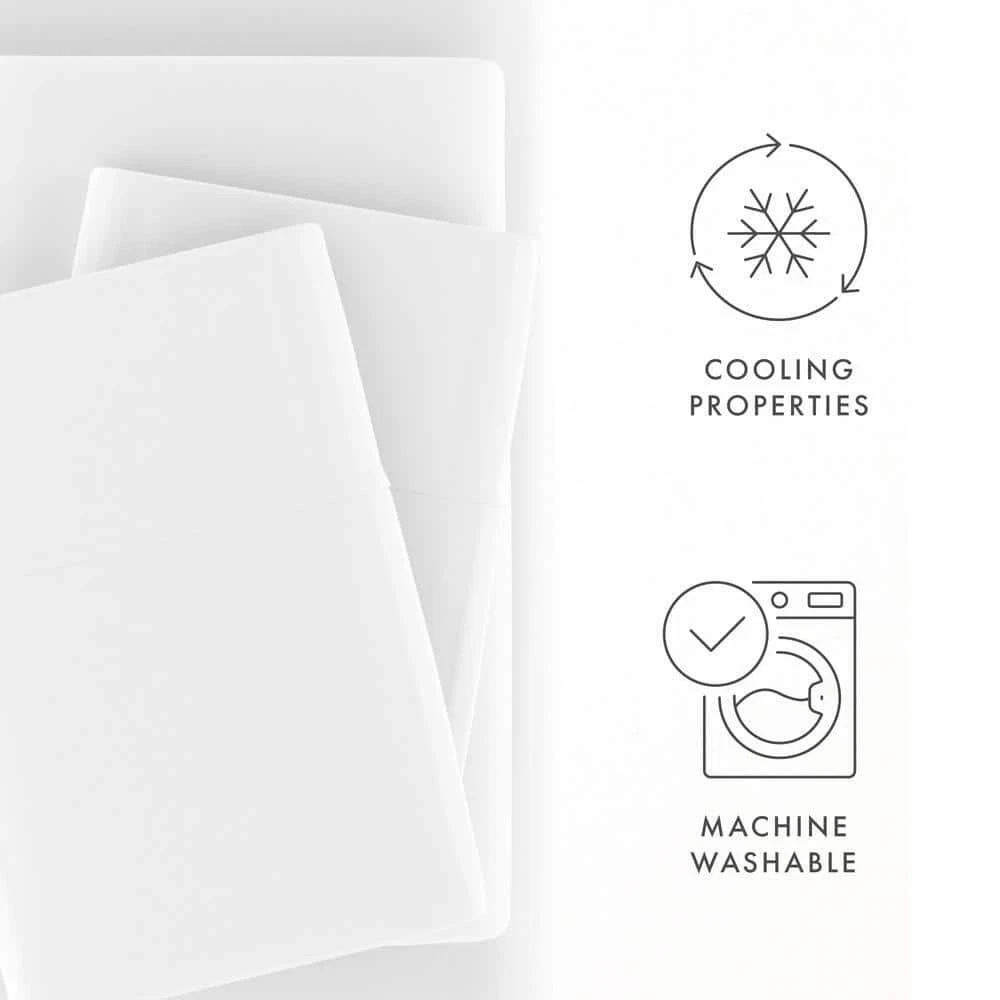 Includes 1-Flat, 1-Fitted, 2-Pcases (TW sets 1-Pcase) 14 in. Deep-Pocket Fitted Sheets The Becky Cameron Sheet Set is the ultimate bedding on the market today. These sheets create a softness unlike you have ever felt before. Satin smoothness and expertly crafted breathability wicks away any sweat or moisture, keeping you dry and comfortable all-night long. You will absolutely love this bedding! We pride ourselves on the high quality of our sheets because we consider your comfort of absolute importance to us. Bedding Material: Rayon Care Instructions: Machine Wash Color: White Color Family: White Decor Type: Bedroom Linen Features: Antimicrobial,Deep Pocket,Hypoallergenic Lifestage: Adult Linen Type: Sheet Set Material: Rayon (100%) Number of Pieces: 4 Occasion: Year Round Origin: Imported Pattern Type: Solid Color Pattern/theme: Solid Pocket Depth (in.): 16 in. Returnable: 30-Day Set Includes: Fitted Sheet,Flat Sheet,Pillow cases Size: Twin Thread Count: 300