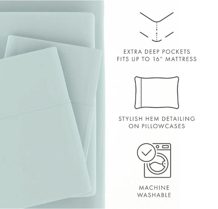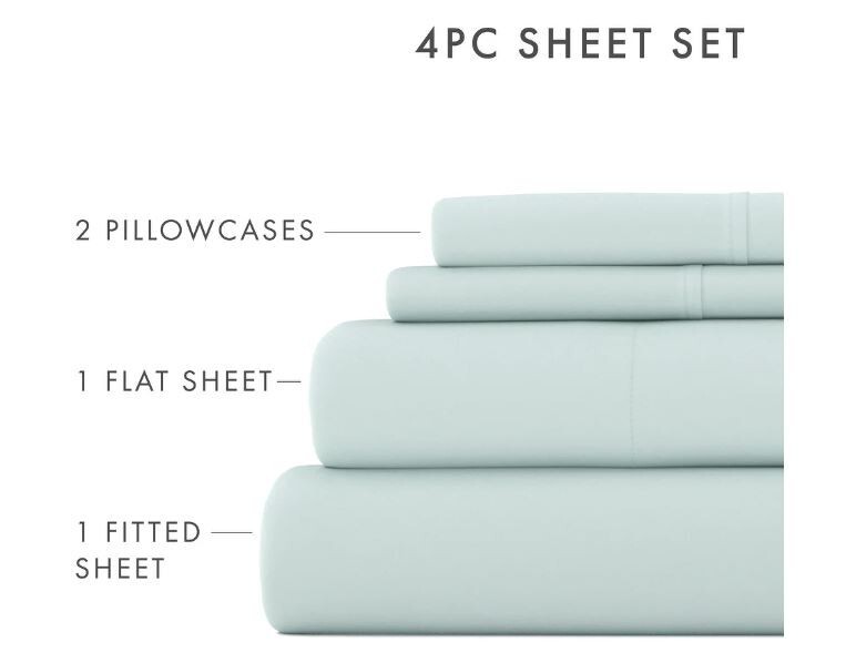 Details: Update your bedroom with this 4-piece bed sheet set. This set includes pillowcases, a flat sheet, and a fitted sheet to cover your basic bedding needs. Fade- and wrinkle-resistant microfiber stays fresh-looking year-round, offering a luxuriously soft, antimicrobial, and hypoallergenic option for your family. Features: Includes 1 flat sheet, 1 fitted sheet, and 2 pillowcases (1 in Twin/Twin XL) Made of plush, breathable microfiber polyester 90 GSM 16-inch deep pocket fitted sheets Machine washable (cold cycle; tumble dry low) Fade-resistant, wrinkle-free design Superior weave for durability and buttery soft touch Hypoallergenic/antimicrobial material Full Dimensions: Fitted sheet: 54 inches wide x 75 inches long + 16-inch pocket depth Flat sheet: 81 inches wide x 96 inches long Standard pillowcases: 20 inches wide x 30 inches long