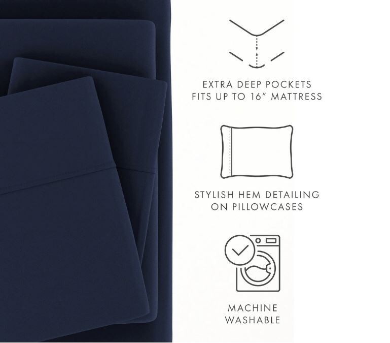 Becky Cameron Full Navy Ultra Soft Microfiber 4-Piece Deep Pocket Bed Sheet Set