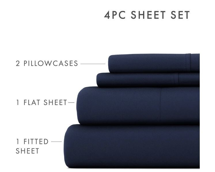 Details: Update your bedroom with this 4-piece bed sheet set. This set includes pillowcases, a flat sheet, and a fitted sheet to cover your basic bedding needs. Fade- and wrinkle-resistant microfiber stays fresh-looking year-round, offering a luxuriously soft, antimicrobial, and hypoallergenic option for your family. Features: Includes 1 flat sheet, 1 fitted sheet, and 2 pillowcases (1 in Twin/Twin XL) Made of plush, breathable microfiber polyester 90 GSM 16-inch deep pocket fitted sheets Machine washable (cold cycle; tumble dry low) Fade-resistant, wrinkle-free design Superior weave for durability and buttery soft touch Hypoallergenic/antimicrobial material Full Dimensions: Fitted sheet: 54 inches wide x 75 inches long + 16-inch pocket depth Flat sheet: 81 inches wide x 96 inches long Standard pillowcases: 20 inches wide x 30 inches long