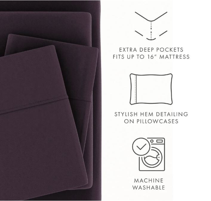 Becky Cameron Soft Microfiber 4-Piece Full Bed Sheet Set in Deep Purple