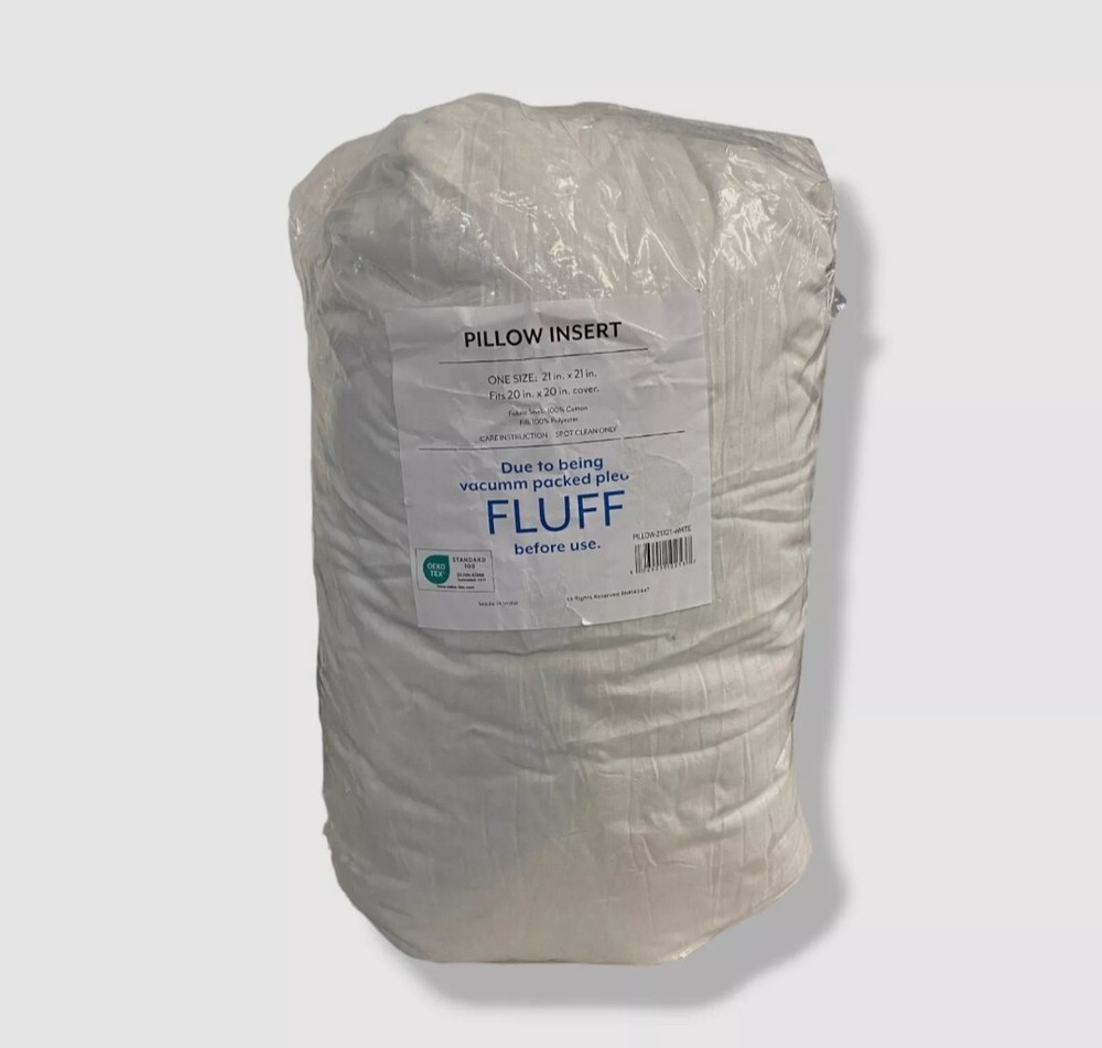 This is a 2pk modern-style Becky Cameron bed pillow insert measuring 21 x 21 inches. It features a square shape, 100% polyester fill material, and a white cotton cover. The pillow is machine washable and hypoallergenic, making it easy to care for and suitable for those with allergies. Made in the United States, this pillow is designed for use in the bedroom.