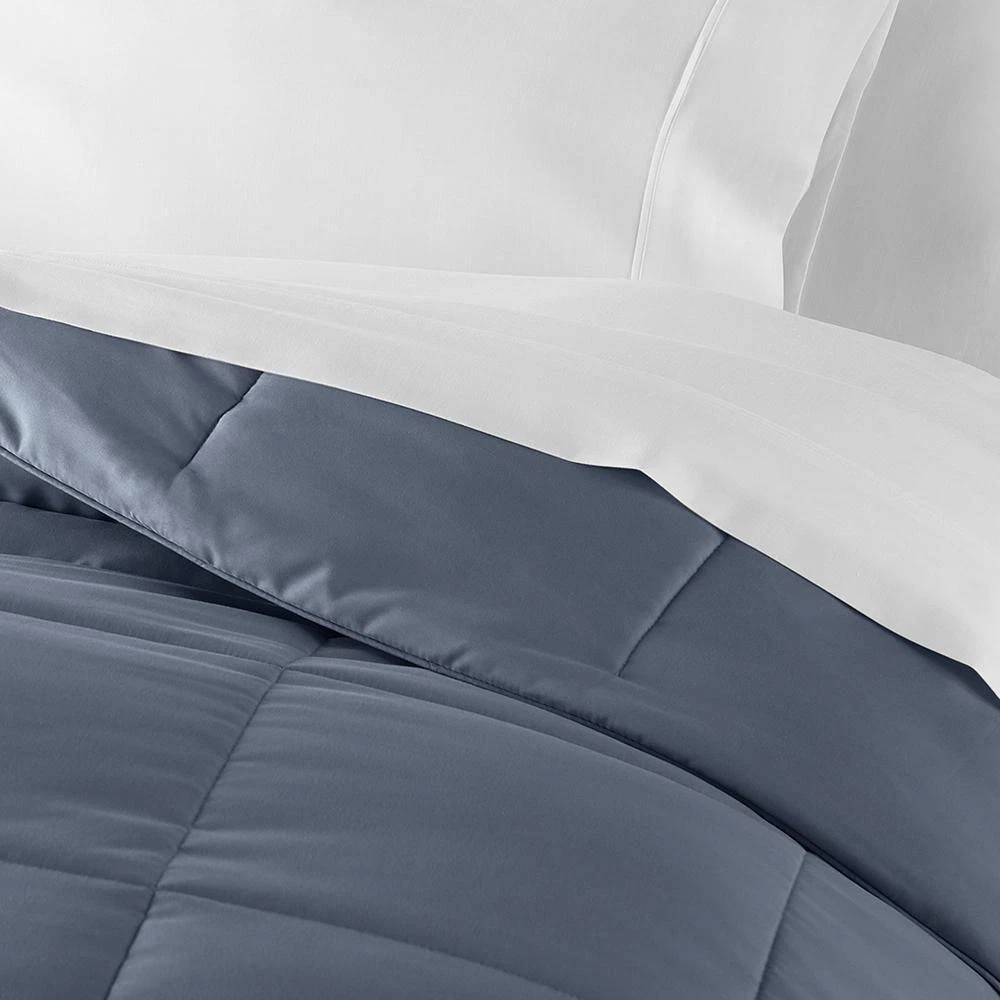 Becky Cameron Performance Microfiber Stone Solid Full/Queen Comforter Bedding Material: Microfiber Care Instructions: Machine Wash Color: Stone Color Family: Blue Decorative Accents: No Decorative Accents Features: Hypoallergenic Fill Material: Down Alternative Lifestage: Adult Linen Type: Comforter Only Material: Polyester (100%) Material Family: Microfiber Number of Pieces: 1 Origin: Imported Pattern Type: Solid Returnable: 30-Day Size: Full/Queen Style: Classic Product Length (in.): 94 in Product Width (in.): 90 in Perfect comforter to keep you cozy all year round. The All-Season Down-Alternative comforter from Becky Cameron features the perfect loft and Down-like feel to keep you warm and toasty while you sleep. Designed for healthy living and 100% hypoallergenic for allergy sufferers, this luxury comforter presents a quality alternative to Down with incredible loft and end to end baffle-box construction, preventing fiber from shifting, eliminating the need for regular fluffing.