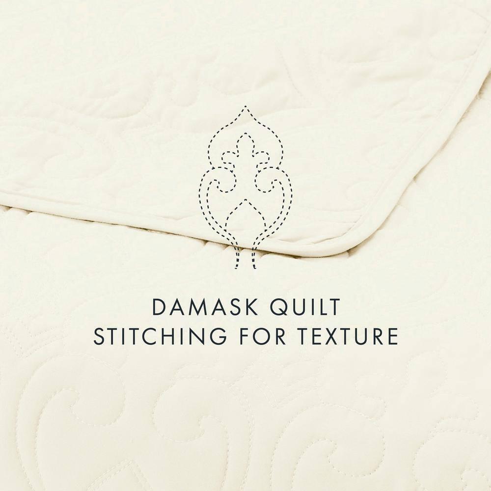 Becky Cameron Damask Ivory Microfiber Twin Performance Quilted Coverlet Set Includes 1 Quilted Coverlet, 2-Shams (Tw set 1-Sham) Hypoallergenic and antimicrobial for sensitive skin Double Brushed Microfiber for comfort and temperature control The Becky Cameron Quilted Coverlet is where casual elegance meets pure uncompromising comfort. Sure to compliment any bedroom style, this beautiful coverlet is available in three timeless patterns. Spun from our premium microfiber yarns, offering twice the durability of cotton and is 100% hypoallergenic. Truly an All Seasons Coverlet, it will keep you warm in the winter and cool in the summer and is sure to add the finishing touch to your tranquil bedroom oasis. Bedding Material: Microfiber Care Instructions: Machine Wash Color: Ivory Color Family: White Decor Type: Bedroom Linen Decorative Accents: No Decorative Accents Features: Hypoallergenic Fill Material: Polyester Lifestage: Adult Linen Type: Coverlet Set Material: Polyester (100%) Material Family: Microfiber Number of Pieces: 2 Origin: Imported Pattern Type: Geometric Returnable: 30-Day Set Includes: Coverlet,Sham Size: Twin Style: Classic Thread Count: 0 Quilt/Coverlet Length (in.): 90 in Quilt/Coverlet Width (in.): 70 in Sham Length (in.): 20 in Sham Width (in.): 26 in