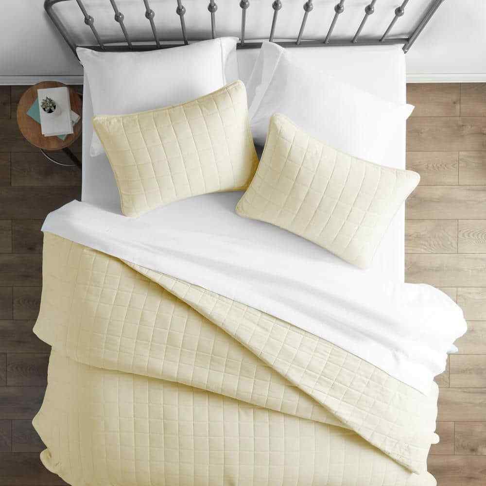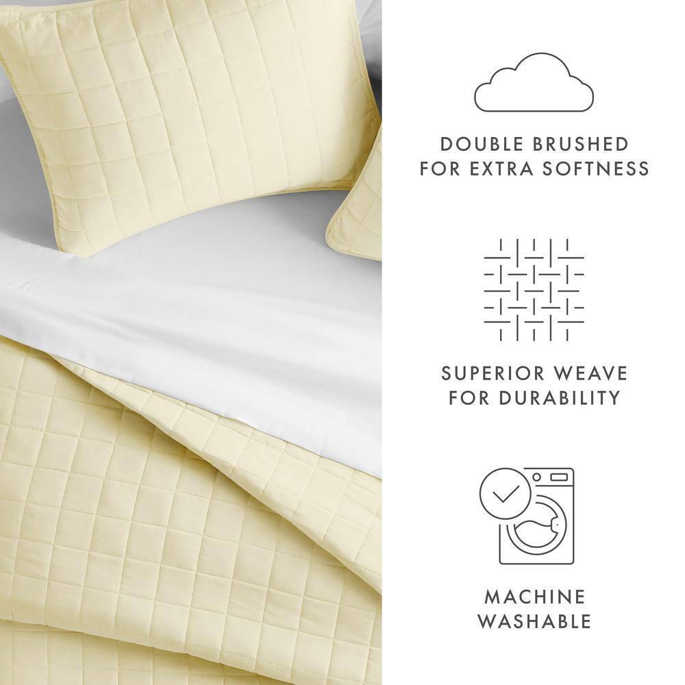 Includes 1 Quilted Coverlet, 2-Shams (Tw set 1-Sham) Hypoallergenic and antimicrobial for sensitive skin Double Brushed Microfiber for comfort and temperature control The Becky Cameron Quilted Coverlet is where casual elegance meets pure uncompromising comfort. Sure to compliment any bedroom style, this beautiful coverlet is available in three timeless patterns. Spun from our premium microfiber yarns, offering twice the durability of cotton and is 100% hypoallergenic. Truly an All Seasons Coverlet, it will keep you warm in the winter and cool in the summer and is sure to add the finishing touch to your tranquil bedroom oasis. Bedding Material: Microfiber Care Instructions: Machine Wash Color: Yellow Decor Type: Bedroom Linen Decorative Accents: No Decorative Accents Features: Hypoallergenic Fill Material: Polyester Lifestage: Adult Linen Type: Coverlet Set Material: Polyester (100%) Material Family: Microfiber Number of Pieces: 3 Origin: Imported Pattern Type: Geometric Returnable: 30-Day Set Includes: Coverlet,Sham Size: Queen Style: Classic Quilt/Coverlet Length (in.): 94 in Quilt/Coverlet Width (in.): 90 in Sham Length (in.): 20 in Sham Width (in.): 26 in