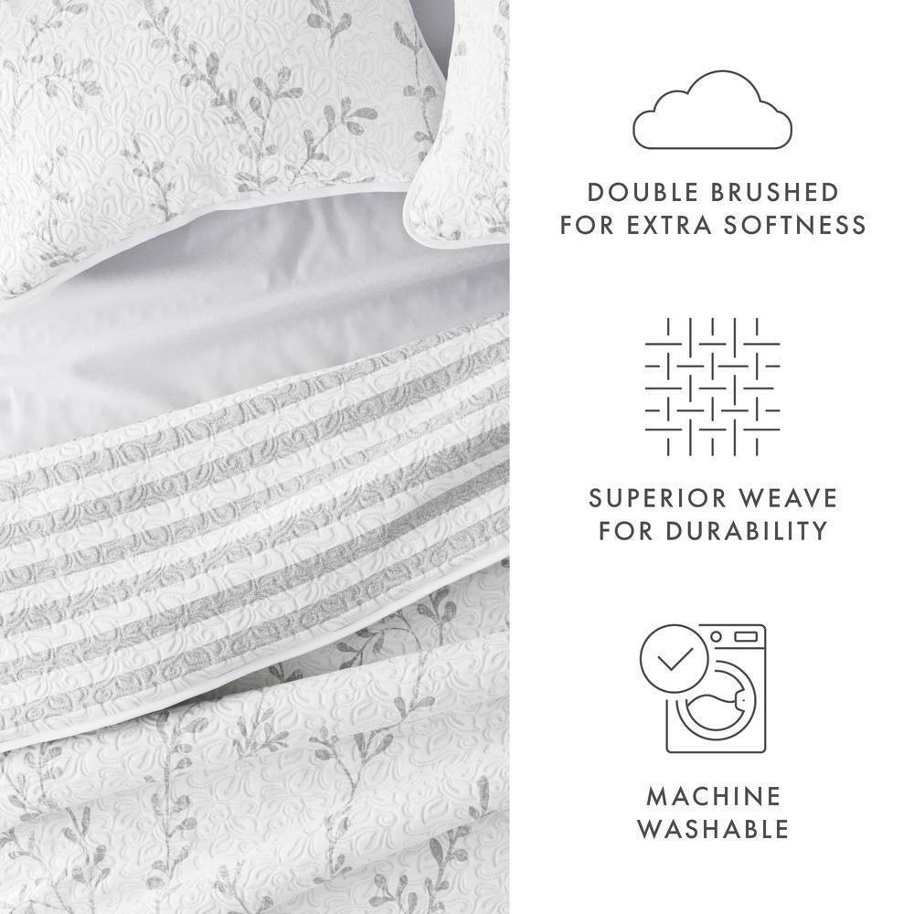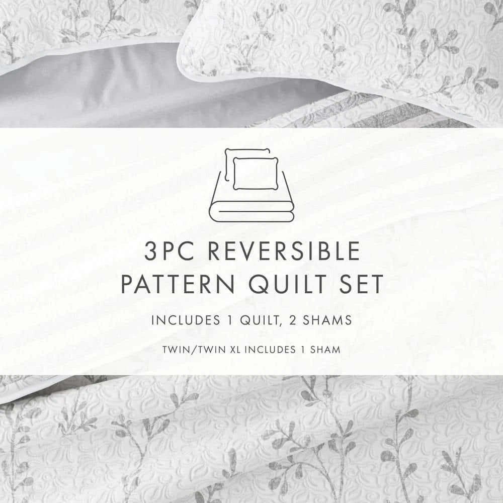 Contact Us Add to Favorite Contact Us Fast Shipping Hassle Free Return eBay Money Back Guarantee Authenticity Guarantee Features Reversible microfiber quilt enhances room versatility Distressed stripe design adds timeless elegance Generously filled for ultimate comfort and coziness Item Description Give your room a comfy new addition with this super soft reversible microfiber quilt and sham set. This pallet brings just the right amount of contemporary style to this beautiful arrangement of shihouette leaves. Reversing to a soft distressed stripe this set will keep you in harmony with nature. This quilt is classic addition to any bedroom. We've generously filled with artificial down, and each piece is double brushed to give it that super soft, cozy feel. Bedding Material: Microfiber Care Instructions: Machine Wash Color: Light Gray Color Family: Gray Decor Type: Bedroom Linen Decorative Accents: No Decorative Accents Features: Reversible,Soft Fill Material: Polyester Lifestage: Adult Linen Type: Quilt Set Material: Polyester (100%) Material Family: Microfiber Number of Pieces: 3 Pattern Type: Floral Returnable: 30-Day Set : Quilt,Sham Size: King/California King Style: Farmhouse,Modern Thread Count: 0 Quilt/Coverlet Length (in.): 96 in Quilt/Coverlet Width (in.): 108 in Sham Length (in.): 20 in Sham Width (in.): 36 in About us Customer service is our top priority! Please be sure to read the description thoroughly to make sure that this is the item you want before making a purchasing decision. If you have any questions about this item, please contact us via eBay messages before placing your order. We make every effort possible to accurately describe and depict the items. Please be aware that slight variations in color may be due to differences in lighting and computer monitor resolutions. All items are in stock at the time of listing; however, in the unlikely and unforeseen event that we are unable to fulfill your order through any of our networked warehouses, we will notify you as quickly as possible and offer you a 100% refund on your purchase. Thank you for shopping with us. We appreciate your business! Payment PayPal is our preferred method of payment. If you do not have a PayPal account, all major credit cards are gladly accepted through PayPal as the payment processor. PayPal offers great buyer and seller protection. Your order will be processed pending receipt of cleared payment through PayPal. Sales tax may be charged depending on your location. Shipping We provide fast, free shipping. Most items are shipped within 3-5 business days of receiving cleared payment. We ship to the lower 48 contiguous United States only. We do not ship to P.O. Boxes or APOs. For select items, we ship internationally through eBayâ??s Global Shipping Program. We do ship most of our smaller items internationally using eBays Global Shipping Program. If ordering electrical items outside of the U.S., please note that they will come equipped with a standard U.S. voltage plugs. You will need a suitable adapter to use the item in your country. Certain restrictions apply. Standard or Economy Shipping is ALWAYS FREE! You will be notified via eBay messages as soon as your items ship. Special Notice for Freight Items: If an item ships via Freight (Truck) Delivery, a valid phone number will be required so that we can contact you to schedule delivery. The item may be delivered with curbside delivery. An adult signature will be required. Please be sure to have available help on hand to assist you with moving the item to the desired location in or outside of your home. Freight items must be inspected upon delivery. In the unlikely event that damaged is observed, you MUST refuse delivery and note the damage on the shipping receipt and send it back via the Freight carrier. Returns will not be accepted on Freight items after they have been delivered, inspected, and the driver has left the premises. Returns We offer a 30 day return/exchange policy for most of our products. You can request a refund if you are dissatisfied for any reason with your product. (Restocking Fee May Apply). Only factory defects are accepted as a reason for a return. In the case of factory defects, if available, we will replace the product for you. When returning an item, it must be in all of the original packaging and include all of the original accessories or items that came with it. The item and package should be in original and perfect condition. You will be required to cover shipping on the return of non-defective items. All returns MUST be done within 30 days of date of purchase. Please note that we cannot give refunds or replacements after the 30 day limit has expired. When sending in a return, please note that it can take up to 7 business days for the return to be processed. We do our best to process as quickly as possible. We are extremely fair, and in the rare event of something out of the ordinary happening with our products or shipping, we will gladly work with you to find a fair resolution. Disclaimer Were sorry, but we do not honor product exchange requests. If you need to exchange an item received, you will need to go through the normal returns process identified in our returns section and then order the correct item, if it is still available. Orders are processed immediately and dispatched to fulfillment as soon as they are received. For this reason, we are typically unable to honor cancellation requests. If you need to cancel the transaction, please contact us as soon as possible and we will attempt to cancel the order. If the order has gone too far through the fulfillment process, we will be unable to cancel. In that event, you would need to wait until you receive the item and go through the normal returns process as mentioned in the returns section of our policies. Payment Options Shop With Confidence Copyright ©2023, All rights reserved. Listed by Sku Fetch