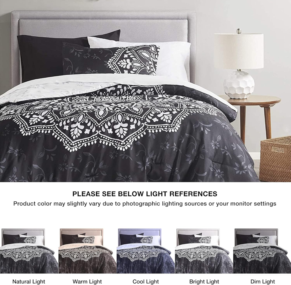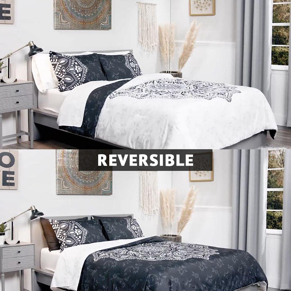Menu Other Items Feedbacks About Us Contact Us Add To Favorites Bed in a Bag - Trendy Casual Design Cozy Comforter with Complete Sheet Set with Side Pocket, All Season Cover, Matching Shams, Twin XL (66 in X 90 In), Ava Medallion Black 6 Piece 100% Microfiber The Comfort Spaces Ava Complete Bed in a Bag Set offers a modern update to match your bedroom décor. For your convenience the fitted sheet comes with a side pocket on each side for extra bedside storage that's perfect for your small electronic devices. Set includes: 1 Comforter: 66"W x 90"L, 1 Standard sham: 20"W x 26"L, 1 Flat sheet: 66"W x 96"L, 1 Fitted sheet: 39"W x 80"L + 12"D, 2 Pillow cases: 20"W x 30"L Care instructions: Machine Wash The Comfort Spaces Ava Complete Bed in a Bag Set offers a modern update to match your bedroom décor. An oversized medallion pattern with hand-drawn geometric details on top of the comforter and the reverse that flips the color scheme with a matching pattern create two distinct looks for your bed. The ultra-soft medallion print sham and solid color pillowcase coordinate with this comfortable bedding set to complete the modern style look of your bedroom. Also included is a complete sheet set that features a fitted sheet with a side pocket on each side for extra bedside storage. SERVICE - If you don't absolutely love this product, return it within 30 days for a full . We'll work with you to resolve any issue and ensure that you're satisfied with your experience. Item Specification Item model number CS10-1331 Style COMFORTER (SET) Assembly required No Color Medallion Black Pattern print Fabric Type 100% Microfiber Material Microfiber Country of Origin China Item dimensions L x W x H 90 x 66 x 1.5 inches Item Weight 5.51 pounds Batteries required No Theme Modern Size Twin XL Department unisex-adult Seasons All Number of Pieces 6 Product Dimensions 90 x 66 x 1.5 inches Product Care Instructions Machine Wash Included Components 1 Comforter, 1 Standard sham, 1 Flat sheet, 1 Fitted sheet, 2 Pillow cases Dimensions Shipping Returns Additional Info Product Dimensions: 66.0 inches x 90.0 inches x 1.5 inches. Weight: 5.51 lb Fast shipping is very important for us. Our standard shipping service is FREE. Your order will be shipped within 1-3 business days upon full payment received. Most items are delivered within 3-5 business days, however, please allow 3-10 business days. We are shipping only to USA. We only ship to the confirmed Paypal address. We reserve the right to cancel any order for any reason at any time. We are not responsible for undeliverable addresses. We offer a 30 day return policy from checkout winning date. Your satisfaction is guaranteed! If for any reason you are unhappy with your item, just return it within 30 days for a full refund, minus shipping cost. Please contact us prior to initiating a return so that we can issue you a refund authorization. Items defective upon receipt must be packaged in their retail packaging as if new and returned with a detailed description of the problem. Return shipping fees are not refundable. We reserve the right to decline any returns if the above guidelines are not followed. All of our items, unless otherwise stated, will only run on 120 volts. Please check to make sure your country complies with these specifications. If you have a problem or question regarding your transaction please contact us before leaving any type of feedback. We will work with you to resolve any problem you may have.