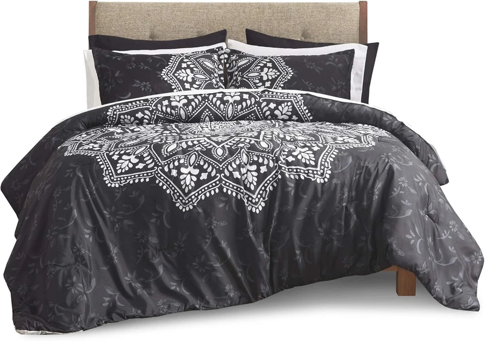 Bed in a Bag - Trendy Casual Design Cozy Comforter with Complete Sheet Set with Side Pocket, All Season Cover, Matching Shams, King(104"X90"), Ava Medallion Black 9 Piece 100% Microfiber The Comfort Spaces Ava Complete Bed in a Bag Set offers a modern update to match your bedroom décor. For your convenience the fitted sheet comes with a side pocket on each side for extra bedside storage that's perfect for your small electronic devices. Set includes: 1 Comforter: 104"W x 90"L, 2 King shams: 20"W x 36"L, 1 Flat sheet: 108"W x 102"L, 1 Fitted sheet: 78"W x 80"L + 15"D, 4 Pillow cases: 20"W x 40"L Care instructions: Machine Wash The Comfort Spaces Ava Complete Bed in a Bag Set offers a modern update to match your bedroom décor. An oversized medallion pattern with hand-drawn geometric details on top of the comforter and the reverse that flips the color scheme with a matching pattern create two distinct looks for your bed. The ultra-soft medallion print sham and solid color pillowcase coordinate with this comfortable bedding set to complete the modern style look of your bedroom. Also included is a complete sheet set that features a fitted sheet with a side pocket on each side for extra bedside storage. SERVICE - If you don't absolutely love this product, return it within 30 days for a full . We'll work with you to resolve any issue and ensure that you're satisfied with your experience. Style Modern Color Medallion Black Pattern print Fabric Type 100% Microfiber Material Type Microfiber Theme Modern Product Care Instructions Machine Wash Seasons All Included Components 1 Comforter, 2 King shams, 1 Flat sheet, 1 Fitted sheet, 4 Pillow cases Size King(104"x90") Style Name Modern Number of Pieces 9 Shipping Fast shipping is very important for us. Our standard US shipping service is FREE. Your order will be shipped within 2-3 business days upon full payment received. Your order will be delivered within 2-3 business days after the handling time. We only ship to the confirmed PayPal address. We reserve the right to cancel any order for any reason at any time. We are not responsible for undeliverable addresses. Returns and payment We offer a 30 days return policy from checkout winning date. We allow only PayPal as payment method FeedBack Your feedback very important to us, after you get your package and you are satisfied with our service please leave us positive feedback If you have any problem with your order / any questions please before leave any type of feedback For any questions, using eBay contact system Please visit our eBay store to check out other items for sale! Thank you for shopping at our store.