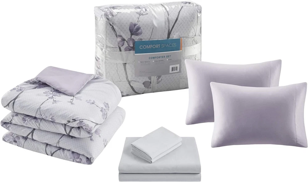 Menu Other Items Feedbacks About Us Contact Us Add To Favorites Bed in a Bag - Trendy Casual Design Cozy Comforter with Complete Sheet Set with Side Pocket, All Season Cover, Matching Shams Full(80"X90"), Kate, Grey/Purple 9 Piece, Cottage 100% Microfiber The Comfort Spaces Kate Complete Bed in a Bag Set offers a refreshing feminine and modern floral update to your beddrom décor Kate comforter set offers feminine allure of floral in soft purple hue bedding set paired with brushed soft microfiber and lightweight cover for all season comfort For your convenience the fitted sheet comes with a side pocket on each side for extra bedside storage that's perfect for your small electronic devices. Set includes: 1 Comforter: 80"W x 90"L, 2 Standard Shams: 20"W x 26"L, 1 Flat Sheet: 81"W x 96"L, 1 Fitted Sheet: 54"W x 75"L + 15"D, 4 Pillowcases: 20"W x 30"L Care instructions: Machine Wash The Comfort Spaces Kate Complete Bed in a Bag Set offers a refreshing traditional style to match your bedroom décor. Floral design in vermicelli quilting adorns the face of the comforter and a solid dark purple reverse brings a relaxing and pleasant update to your bedroom. Matching floral print sham and solid color pillowcase create a charming cottage look. Also included is a complete sheet set in grey that features a fitted sheet with a side pocket on each side for extra bedside storage. SERVICE - If you don't absolutely love this product, return it within 30 days for a full . We'll work with you to resolve any issue and ensure that you're satisfied with your experience. Item Specification Item model number CS10-1324 Style Cottage Assembly required No Pattern Floral Country of Origin China Theme Floral Department unisex-adult Number of Pieces 9 Batteries required No Product Dimensions 90 x 80 x 1.5 inches Material Microfiber Seasons All Included Components 1 Comforter, 2 Standard shams, 1 Flat sheet, 1 Fitted sheet, 4 Pillow cases Item dimensions L x W x H 90 x 80 x 1.5 inches Fabric Type 100% Microfiber Item Weight 6.61 pounds Color Floral Purple Refill fiber Product Care Instructions Machine Wash Size Full(80"x90") Dimensions Shipping Returns Additional Info Product Dimensions: 80.0 inches x 90.0 inches x 1.5 inches. Weight: 6.61 lb Fast shipping is very important for us. Our standard shipping service is FREE. Your order will be shipped within 1-3 business days upon full payment received. Most items are delivered within 3-5 business days, however, please allow 3-10 business days. We are shipping only to USA. We only ship to the confirmed Paypal address. We reserve the right to cancel any order for any reason at any time. We are not responsible for undeliverable addresses. We offer a 30 day return policy from checkout winning date. Your satisfaction is guaranteed! If for any reason you are unhappy with your item, just return it within 30 days for a full refund, minus shipping cost. Please contact us prior to initiating a return so that we can issue you a refund authorization. Items defective upon receipt must be packaged in their retail packaging as if new and returned with a detailed description of the problem. Return shipping fees are not refundable. We reserve the right to decline any returns if the above guidelines are not followed. All of our items, unless otherwise stated, will only run on 120 volts. Please check to make sure your country complies with these specifications. If you have a problem or question regarding your transaction please contact us before leaving any type of feedback. We will work with you to resolve any problem you may have.