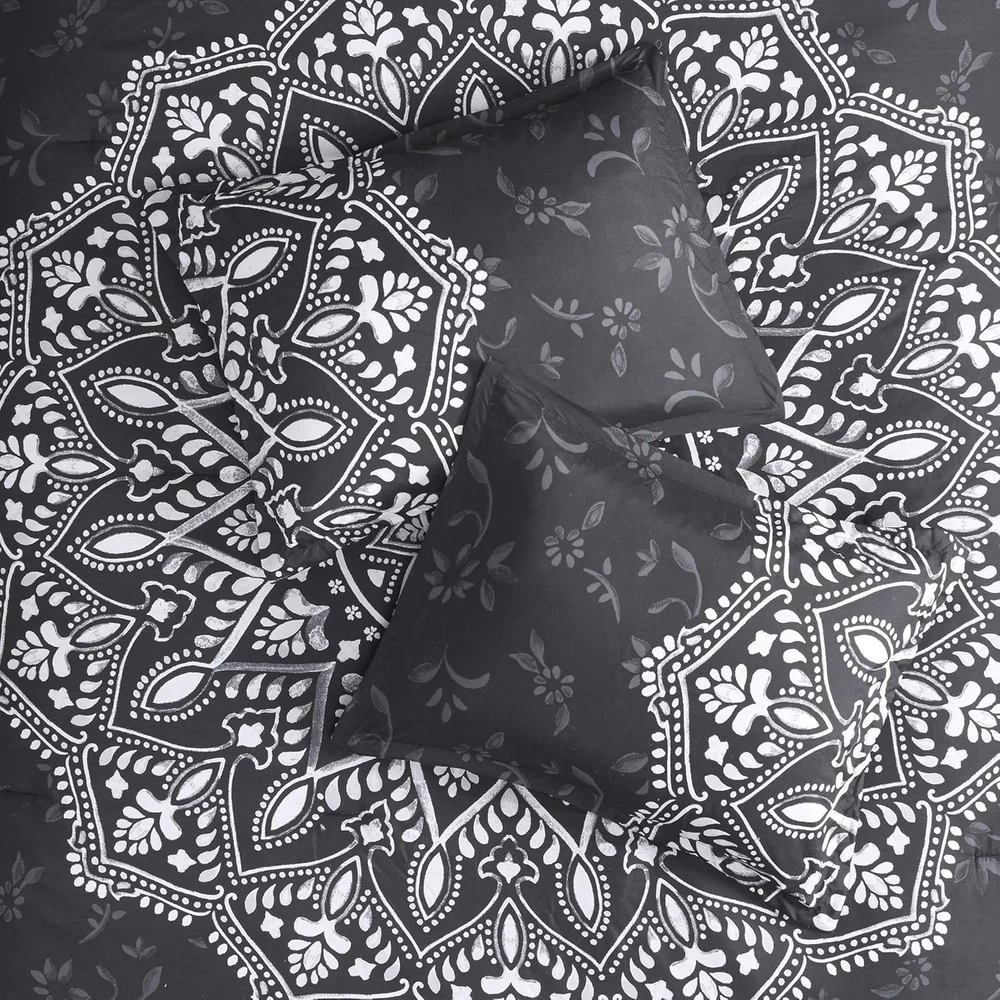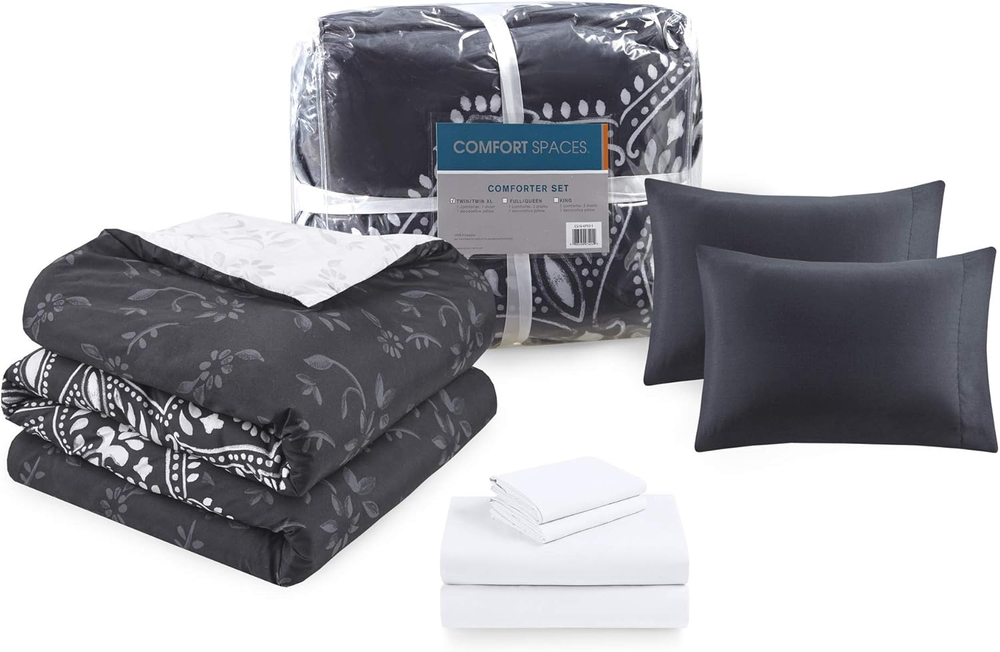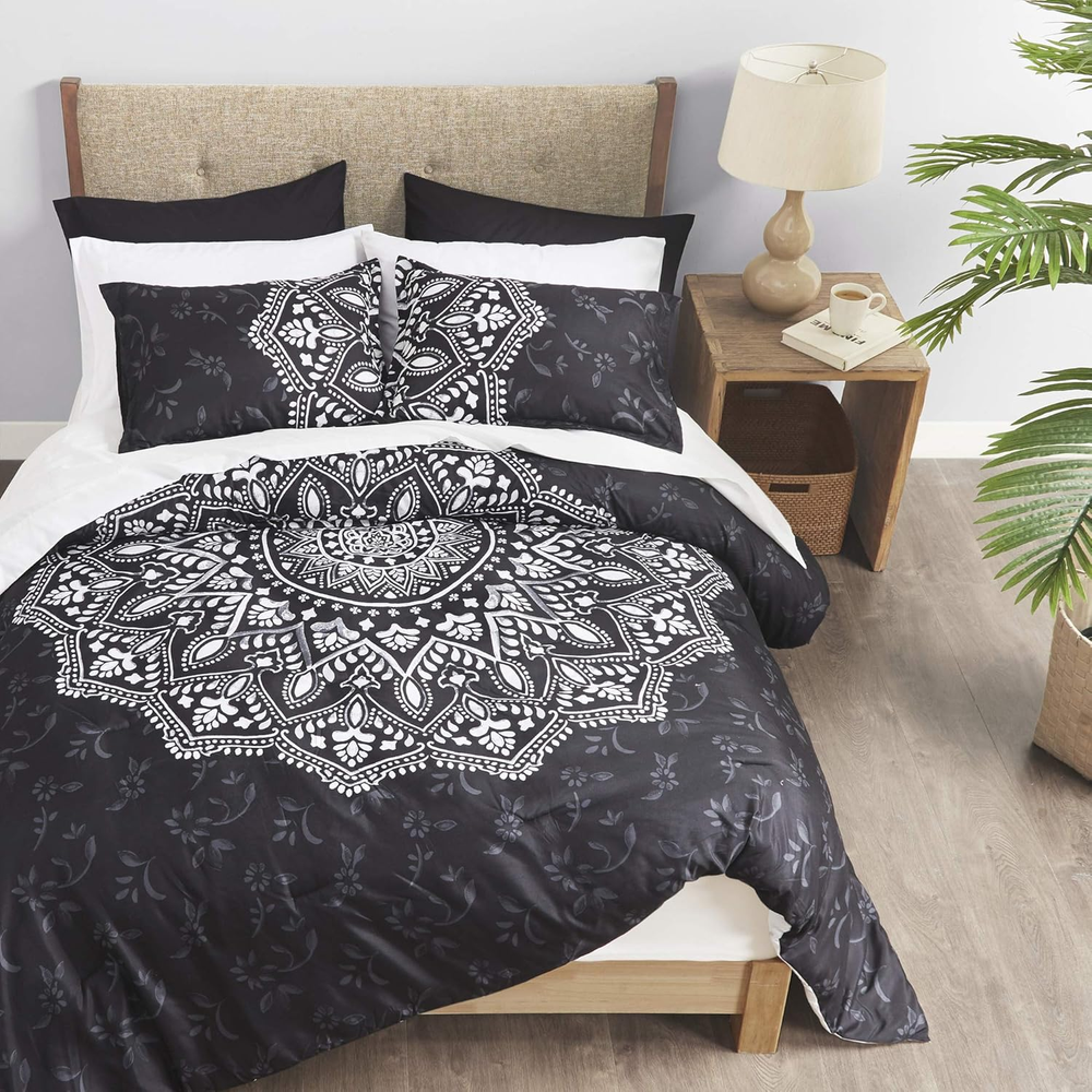 Store New Arrivals Add to Favorite View Feedback Contact Bed in a Bag - Trendy Casual Design Cozy Comforter with Complete Sheet Set with Side Pocket, All Season Cover, Matching Shams, King(104"X90"), Ava Medallion Black 9 Piece Description Style Modern Color Medallion Black Pattern print Fabric Type 100% Microfiber Material Type Microfiber Theme Modern Product Care Instructions Machine Wash Seasons All Included Components 1 Comforter, 2 King shams, 1 Flat sheet, 1 Fitted sheet, 4 Pillow cases Size King(104"x90") Style Name Modern Number of Pieces 9 100% Microfiber The Comfort Spaces Ava Complete Bed in a Bag Set offers a modern update to match your bedroom décor. For your convenience the fitted sheet comes with a side pocket on each side for extra bedside storage that's perfect for your small electronic devices. Set includes: 1 Comforter: 104"W x 90"L, 2 King shams: 20"W x 36"L, 1 Flat sheet: 108"W x 102"L, 1 Fitted sheet: 78"W x 80"L + 15"D, 4 Pillow cases: 20"W x 40"L Care instructions: Machine Wash The Comfort Spaces Ava Complete Bed in a Bag Set offers a modern update to match your bedroom décor. An oversized medallion pattern with hand-drawn geometric details on top of the comforter and the reverse that flips the color scheme with a matching pattern create two distinct looks for your bed. The ultra-soft medallion print sham and solid color pillowcase coordinate with this comfortable bedding set to complete the modern style look of your bedroom. Also included is a complete sheet set that features a fitted sheet with a side pocket on each side for extra bedside storage. SERVICE - If you don't absolutely love this product, return it within 30 days for a full . We'll work with you to resolve any issue and ensure that you're satisfied with your experience. ABOUT US We offer the best prices around on high quality products. Our E-store includes media such as books, movies, music and games while offering electronics, toys, sporting apparel, clothing, tools, general home, garden items and more. SHIPPING We are always working hard to ensure your package arrives as soon as possible. Please understand that some factors like weather, high postal traffic, and the performance of shipping companies are outside of our control. We offer free shipping to the lower 48 states and ship within 2 business days of payment, usually sooner. We do not accept P.O. Boxes. Please provide a physical address. For shipping outside of the continental USA, we only use eBay's Global Shipping Program.The item is shipped to KY and then sent to the rest of the world. International customers are responsible for all duties and taxes. Continue to check out in order to calculate costs for shipping the item to your country. Messages regarding eBay's Global Shipping Program MUST be directed at eBay EXCLUSIVELY. RETURNS We offer a 30-Day Return Policy on items which you are not completely satisfied with. You have the option for a full-refund or an exchange of the item. No returns are available on items shipped outside of the USA. PAYMENT We accept PayPal. CONTACT US This page content is yet to come Please ad us to your favorite seller and visit again later Thank You CUSTOMER SATISFACTION We try our very best to make sure every customer is completely satisfied. If there's a problem, message us! We're happy to help. WE ACCEPT Copyright © 2021 AutoDS. | All Rights Reserved
