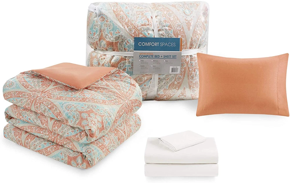 Store New Arrivals Add to Favorite View Feedback Contact Bed in a Bag - Trendy Casual Design Cozy Comforter with Complete Sheet Set with Side Pocket, All Season Cover, Matching Shams, Twin XL(66 in X 90 In), Gloria, Damask Coral 6 Piece Description Item model number CS10-1307 Style Modern Assembly required No Color Damask Coral Pattern Solid Fabric Type 100% Microfiber Material Microfiber Country of Origin China Item Weight 5.52 pounds Batteries required No Theme Modern,Damask Size Twin XL(66"x90") Department unisex-adult Seasons All Number of Pieces 6 Product Dimensions 90 x 66 x 1.5 inches Product Care Instructions Machine Wash Included Components 1 Comforter, 1 Standard Sham, 1 Flat Sheet, 1 Fitted Sheet, 2 Standard Pillowcases 100% Microfiber The Comfort Spaces Gloria Complete Bed in a Bag Set; comforter with sheet set offers an eye-catching and modern update to match your bedroom décor Chic damask with medallion print in gorgeous subtle color bring modern and trendy update to your bedroom décor; brushed soft microfiber and lightweight cover will be ideal for all season comfort For your convenience the fitted sheet comes with a side pocket on each side for extra bedside storage that's perfect for your small electronic devices. Set includes: 1 Comforter: 66"W x 90"L, 1 Standard Sham: 20"W x 26"L, 1 Flat Sheet: 66"W x 96"L, 1 Fitted Sheet: 39"W x 80"L plus 12"D, 2 Standard Pillowcases: 20"W x 30"L Care instructions: Machine wash cold on gentle cycle, tumble dry on low heat, wash alone USING LARGE CAPACITY COMMERCIAL WASHER/DRYER, do not bleach. The Comfort Spaces Gloria Complete Bed in a Bag Set offers an eye-catching, modern update to match your bedroom décor. An intricate medallion pattern that repeats across the top of bed and a solid coral reverse creates two distinct looks for your bed. The ultra-soft medallion print sham and solid coral pillowcase coordinate with this comfortable bedding set to complete the modern style look of your bedroom. Also included is a complete sheet set in solid ivory that features a fitted sheet with a side pocket on each side for extra bedside storage. SERVICE - If you don't absolutely love this product, return it within 30 days for a full . We'll work with you to resolve any issue and ensure that you're satisfied with your experience. ABOUT US We offer the best prices around on high quality products. Our E-store includes media such as books, movies, music and games while offering electronics, toys, sporting apparel, clothing, tools, general home, garden items and more. SHIPPING We are always working hard to ensure your package arrives as soon as possible. Please understand that some factors like weather, high postal traffic, and the performance of shipping companies are outside of our control. We offer free shipping to the lower 48 states and ship within 2 business days of payment, usually sooner. We do not accept P.O. Boxes. Please provide a physical address. For shipping outside of the continental USA, we only use eBay's Global Shipping Program.The item is shipped to KY and then sent to the rest of the world. International customers are responsible for all duties and taxes. Continue to check out in order to calculate costs for shipping the item to your country. Messages regarding eBay's Global Shipping Program MUST be directed at eBay EXCLUSIVELY. RETURNS We offer a 30-Day Return Policy on items which you are not completely satisfied with. You have the option for a full-refund or an exchange of the item. No returns are available on items shipped outside of the USA. PAYMENT We accept PayPal. CONTACT US This page content is yet to come Please ad us to your favorite seller and visit again later Thank You CUSTOMER SATISFACTION We try our very best to make sure every customer is completely satisfied. If there's a problem, message us! We're happy to help. WE ACCEPT Copyright © 2021 AutoDS. | All Rights Reserved