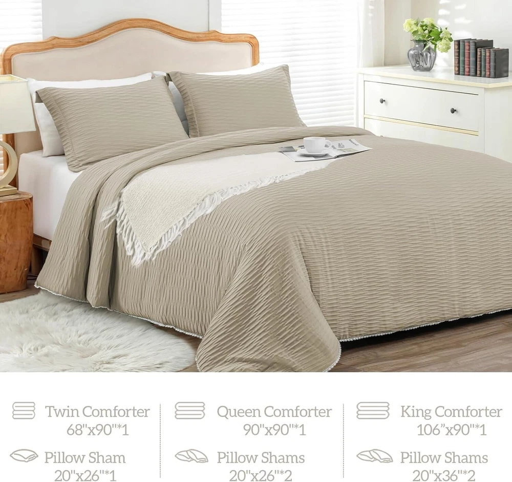 Beige Jacquard King Comforter Set – Cozy, Washable, and Perfect for Every Season ‹ › ‹ › ‹ › ‹ › ‹ › ‹ › ‹ › ‹ › ‹ › Beige Jacquard King Comforter Set This luxurious comforter set provides cozy, washable, and year-round comfort perfect for your bedroom's ambiance. Features: Lightweight yet warm: Made of high-quality 100% microfiber, this all-season comforter keeps you warm during cold nights while remaining lightweight. Ultra soft and breathable: Filled with microfiber for plushness, the smooth fabric offers a comfortable and airy sleeping experience without any stuffiness. Chic boho style: Featuring exquisite jacquard craftsmanship and modern lace edging, this comforter is available in 4 classic colors: White, Teal, Light Grey, and Beige. Machine washable: Easy to care for, this comforter set can be washed on a gentle cycle in cold water and tumble dried on low without fading or shrinking. OEKO-TEX Standard 100 certified: Ensuring it meets high safety and environmental standards, this comforter is a choice you can trust. What You Get: The set includes 1 comforter (90"x90") and 2 pillow shams (20"x26"), ideal for elevating your bedroom decor. Benefits: Versatile all-season comfort to keep you cozy year-round. Chic design elements enhance your bedroom's aesthetics. Easy care and maintenance with machine washability. Perfect gift option for birthdays, holidays, or housewarming parties. Why choose our Beige Jacquard King Comforter Set? Experience the perfect blend of comfort, style, and practicality with our Beige Jacquard King Comforter Set. Its lightweight design ensures warmth without the bulk, while the ultra-soft fabric promises breathability for a restful night's sleep. Whether you're redecorating your bedroom or seeking the ideal gift for loved ones, this comforter set is sure to impress. Don’t settle for ordinary; elevate your sleeping experience with elegance and comfort today! Shipping Free & Fast Shipping - We offer free shipping to most of the USA with a normal delivery time of 3-7 days. However, due to the current situation, additional delivery time (up to 3 weeks) may be required for some items. Alternative Carriers - We may use alternative carriers (e.g. USPS, FedEx, UPS, etc.) to ensure your package arrives safely and on time. Due to the use of multiple carriers, we are unable to provide a tracking number automatically. Handling Time - Orders are processed and shipped within 1-2 business days of receiving cleared payment. Shipping Restrictions - Shipping to Alaska, Hawaii, Puerto Rico, Guam, and other US territories may incur shipping charges or delivery restrictions. Please contact us before ordering, or your order can be refunded/cancelled. State Restrictions - There may be restrictions based on your state of purchase. For example, certain items may not be shipped to California due to state regulations. Contact for Tracking Updates - If you require tracking updates or have any concerns about the delivery of your order, please feel free to contact us, and we will be happy to assist you. Return 30-Day Hassle-Free Returns - We want you to be completely satisfied with your purchase. If you are not, you can return the item within 30 days of receiving it for a full refund or exchange. Easy Return Process - To start a return, simply contact us and we will provide you with a prepaid return shipping label and detailed instructions. Restocking Fee - There are no restocking fees for returns. However, the buyer is responsible for return shipping costs if the return is not due to a seller's error. Refund Processing Time - Refunds will be processed within 5 business days of receiving the returned item in its original condition. Payment We accept all major credit cards, PayPal, and Apple Pay for your convenience. Your payment information is secure and encrypted to ensure a safe and seamless transaction. Please complete your payment within 3 days of purchase to avoid any delays in shipping. Feedback Your feedback is extremely important to us. We strive to provide the best products and customer service possible. If you are satisfied with your purchase, please take a moment to leave us a positive review. If you have any concerns or issues with your order, please contact us before leaving negative feedback. We are committed to resolving any problems and ensuring your satisfaction. Contact Us If you have any questions or concerns, please feel free to reach out to our customer support team. You can contact us through the eBay messaging system. We are available Monday to Friday, 9:00 am to 5:00 pm EST, and we will do our best to respond to your inquiry within 24 hours. Buy it now and enjoy a pleasant shopping experience! UPC: Not Set Model: Not Set Set Includes: Comforter,Pillow Sham Material: Microfiber,Polyester Character: Not Set Features: Breathable,Lightweight,Warm,Ultra Soft Theme: Seasonal Care Instructions: Do Not Bleach,Machine Wash,Tumble Dry on Low Heat Department: Adults Room: Bedroom Labels & Certifications: Not Set Size: King Type: Comforter Set Brand: Unbranded Color: Beige Fill Material: Down Alternative Pattern: Jacquard Item Width: Not Set Item Length: Not Set MPN: Not Set Character Family: Not Set Number of Items in Set: 3 Insulation: All Seasons Style: Bohemian Season: All Country/Region of Manufacture: Not Set Closure Type: No Closure Thread Count: 200 or Less Drop Length: Not Set GSM (Grams per Square Meter): Below 150 Product Line: Not Set Personalize: Not Set