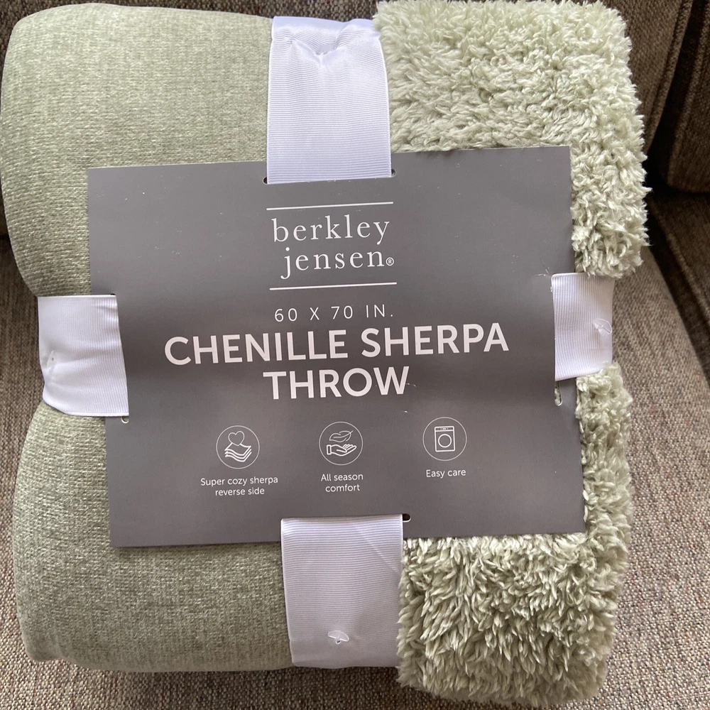 Berkley Jensen Chenille Sherpa Throw 60”x70” Inches Super Cozy Sherpa Light Green. Condition is New with tags. Shipped with USPS Ground Advantage. I have one more in this color if you want two ,just let me know i can make a bundle.