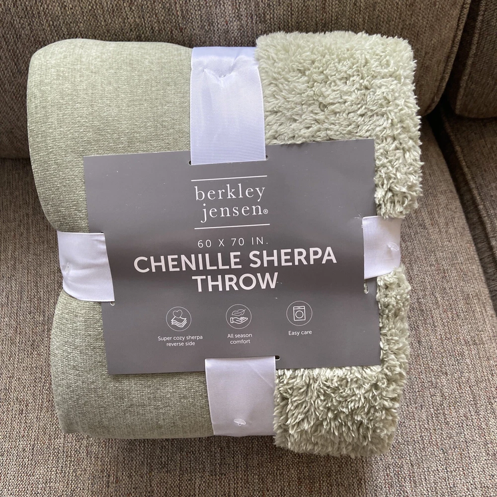 Berkley Jensen Chenille Sherpa Throw 60”x70” Inches Super Cozy Sherpa Light Green. Condition is New with tags. Shipped with USPS Ground Advantage. I have one more in this color if you want two ,just l...