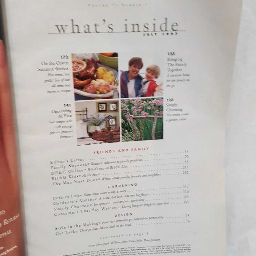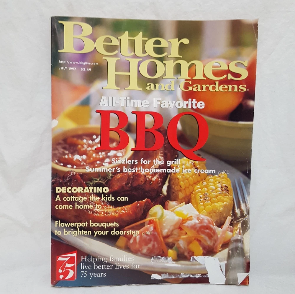 Decorating a cottage the kids can come home to Brand: Better Homes and Gardens Item: Magazine Theme : Flowerpot bouquets to brighten your doorstep Helping families live better lives for 75 years All-Time Favorite BBQ Sizzlers for the grill Summer's best homemade ice cream Year: July 1997 Condition: Wear to covers, edges and spine. Mailing label damage and corners are bent. Rip on the back cover at the top. International Shipping - Buyer pays full shipping charges, tariffs, duties, fees, etc...