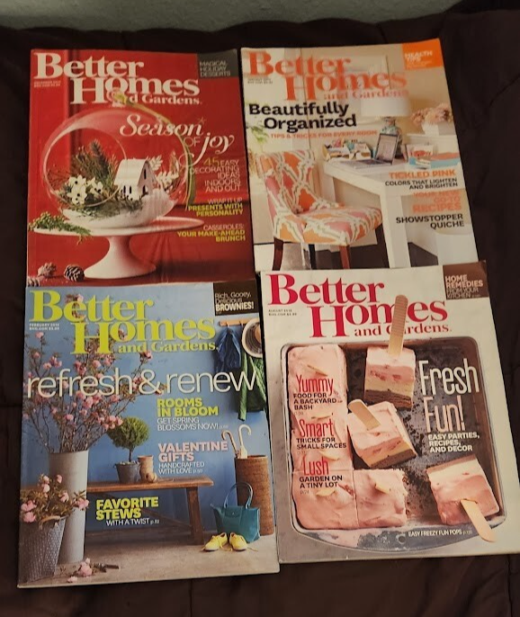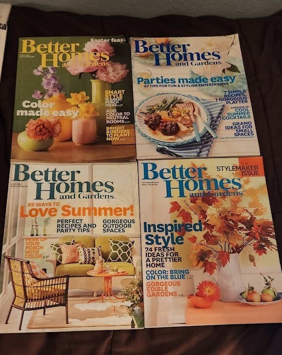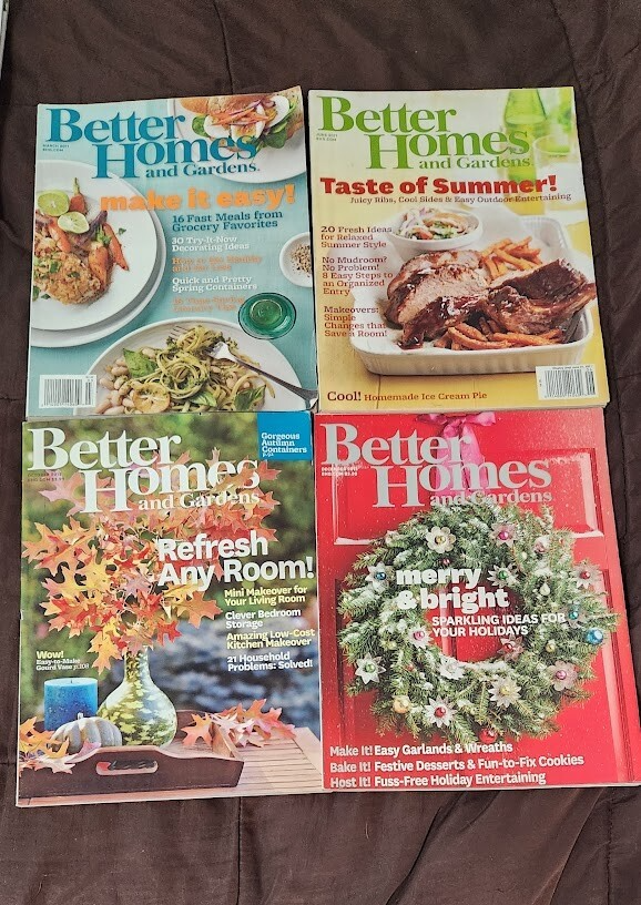 Up for purchase is copies of Better Homes &Garden magazines that are in very good condition and will be mailed in between to pieces of cardboard and the they are inside a poly mailer /enevlope and will have fragile stickers on all sides of the envelope. Please see choices below: BHG-Make it easy! (March 2011) BHG-Taste of Summer (June 2011) BHG-Refresh Any Room! (October 2013) BHG-Merry & Bright (December 2013) BHG-Color made easy (April 2014) BHG-Parties made easy (June 2014) BHG-89 ways to Love Summer (July 2014) BHG-Inspired Style (September 2014) BHG-Season of Joy (December 2014) that has a wringled cover BHG-Beautifully Organized (January 2015) BHG-Refresh & Renew (February 2015) BGH-Fresh Fun (August 2015) BGH-Be Mine (February 2017) BHG-A New Twist on Fall (October 2019) BHG-The Joy of Giving (December 2020) BHG-10th Anniversary: Style Maker Issue (May 2021) BHG-Let your home tell your story (September 2021) BHG-Make it Fun (October 2021) BHG-All Set to Celebrate (November 2021) BHG-The Food Issue (March 2022) BHG-Family Ties:Dave & Jenny Marrs (April 2023) BHG-Hello Summer (July/August 2022) BHG-Cozy Up to Fall (October 2023) BHG-A Slice of America (November 2023) Please pay within 3 days of purchase. USPS tracking number will be provided. P lease provide which copy you want in seller's note section at check out. I will mail the brand-new to very good condition copies of Better Homes that will be mailed in between to pieces of cardboard and the they are inside a poly mailer/enevlope and will have fragile stickers on all sides of the envelope once payment is recieved. *Please Note: All Sales are Final- If you have concerns regarding your purchase once you receive it, please e-mail me using Ebay messaging prior to leaving feedback.
