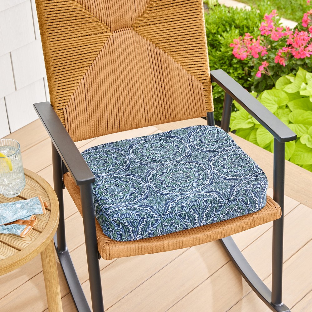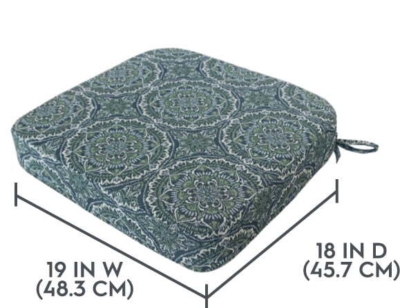 Just got this cushion and it’s a game-changer for my patio chairs! The foam is super supportive yet comfortable, and the water-resistant fabric stays fresh even after rain. The medallion print adds a nice pop of color without fading. Fits perfectly on my dining chairs and the Scotchgard treatment is great against spills. Highly recommend for both style and durability!